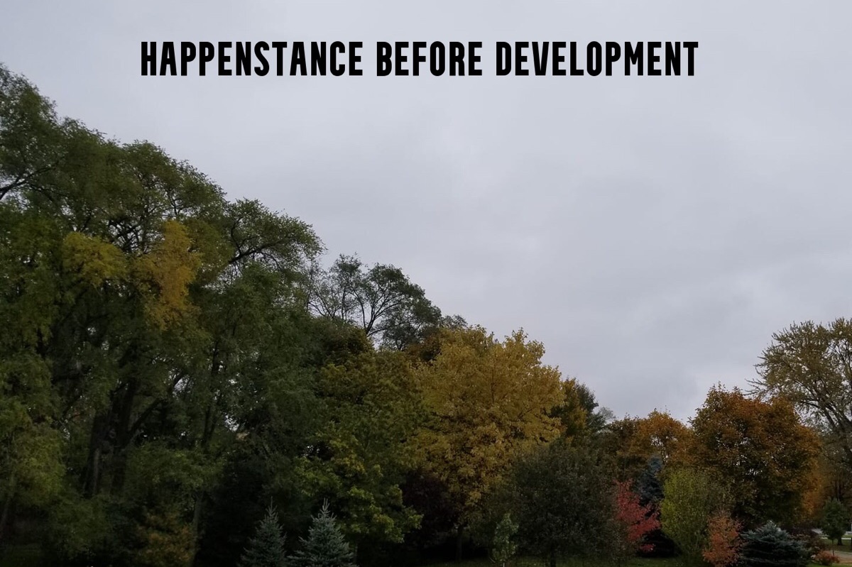 Due to new housing developments being built, many of the trees, bushes, etc have been removed. This has caused a significant amount of property damage at Happenstance and a dramatic loss of habitat for a variety of wildlife including Big Brown Bats, Hairy Woodpeckers and many many others. The tree removal has also caused an extreme removal of privacy and quiet space - impacting the ability for Happenstance to provide space for artists to create.