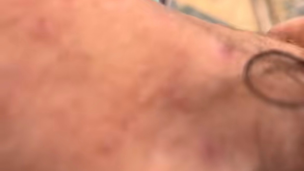 They suffer from skin bacteria. There is no treatment here, and if there is one, it is very expensive. They cannot sleep because of the itching and pain. Skin bacteria comes because the occupation prevents the entry of cleaning materials and health protection materials. Please save us before it is too late