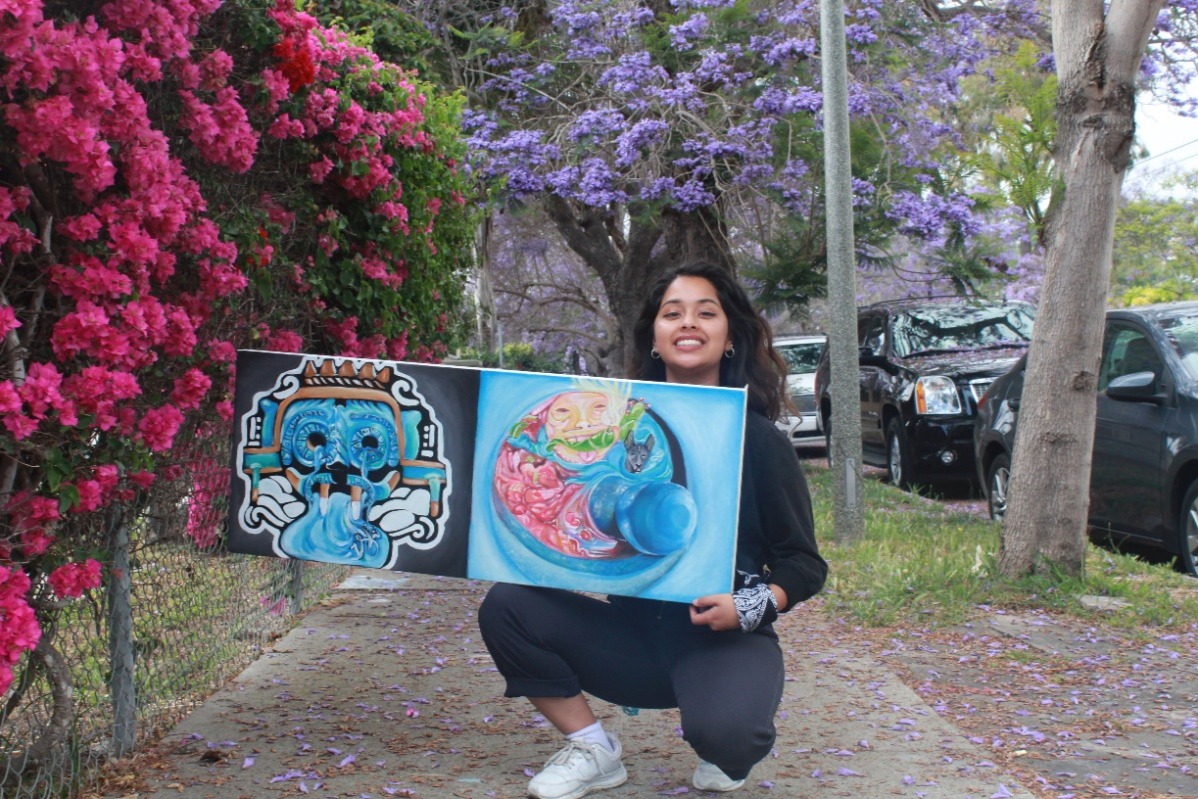 Durante la escuela secundaria estaba entre los mejores de mi clase con un GPA de 3.8 y pude graduarme con honores. Recibí la medalla de Don Distinguido y el Premio al Espíritu de Servicio por mi trabajo. También soy Artista, y definitivamente puedes ver el impacto de mi amor por mi identidad e historia cultural mexicana en todas mis piezas. Durante aproximadamente 4 años, trabajé pintando murales para la ciudad, a través de un programa juvenil que ayuda a combatir el vandalismo y la violencia de las pandillas a través de proyectos de embellecimiento. Tuve mi arte expuesto en aproximadamente 7 exposiciones, incluida una para el Museo de Arte Contemporáneo de Santa Bárbara y otra para el Museo de Arte de Santa Bárbara. He diseñado camisetas y creado logotipos para grupos de estudiantes de Undoc tanto en la UCR como en mi escuela secundaria. También soy fotógrafa, artista, organizadora de eventos y activista.