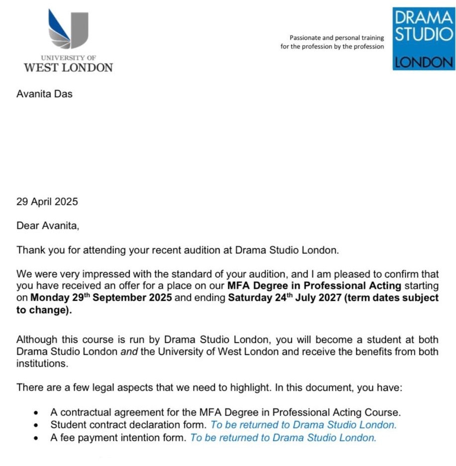 I was accepted into Drama Studio London, one of the UK’s most respected performing arts schools. This opportunity is more than a program—it’s a launching pad for my future as an artist and storyteller.