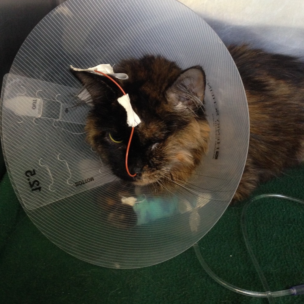 IN A NUTSHELL: Christmas 2012, I fell in love with an emaciated one-eyed, half-dead cat in a paper bag. I took her home, fattened her up, and voilà: Piglet. Three weeks ago, she stopped eating entirely. Two hospitals and $11,000 later, we're still not out of the woods.
