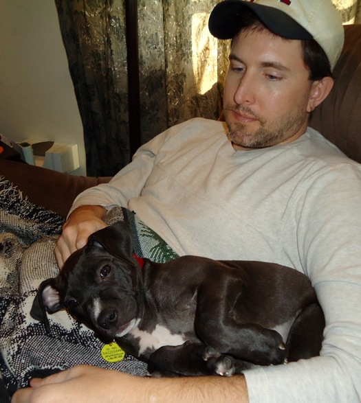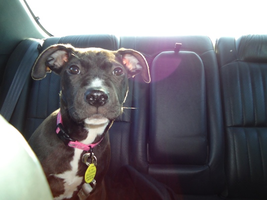 These photos were taken the same day we brought her home, tired puppy, sleeping in my lap!