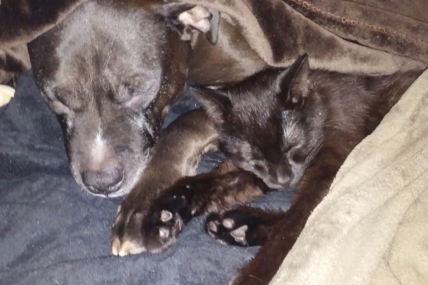 She used to love to chase our kitten, and he's still so full of energy and he loves to be chased, tries to get her to chase him, but Zoey won't even try anymore.  The kitten is hard enough to see; he's all black, and when he's lying on black blankets, in the dark, WE can't even see him; a normal "sighted dog", who is colorblind, would have a hard time, so Zoey with her loss of vision, can't see him at all.