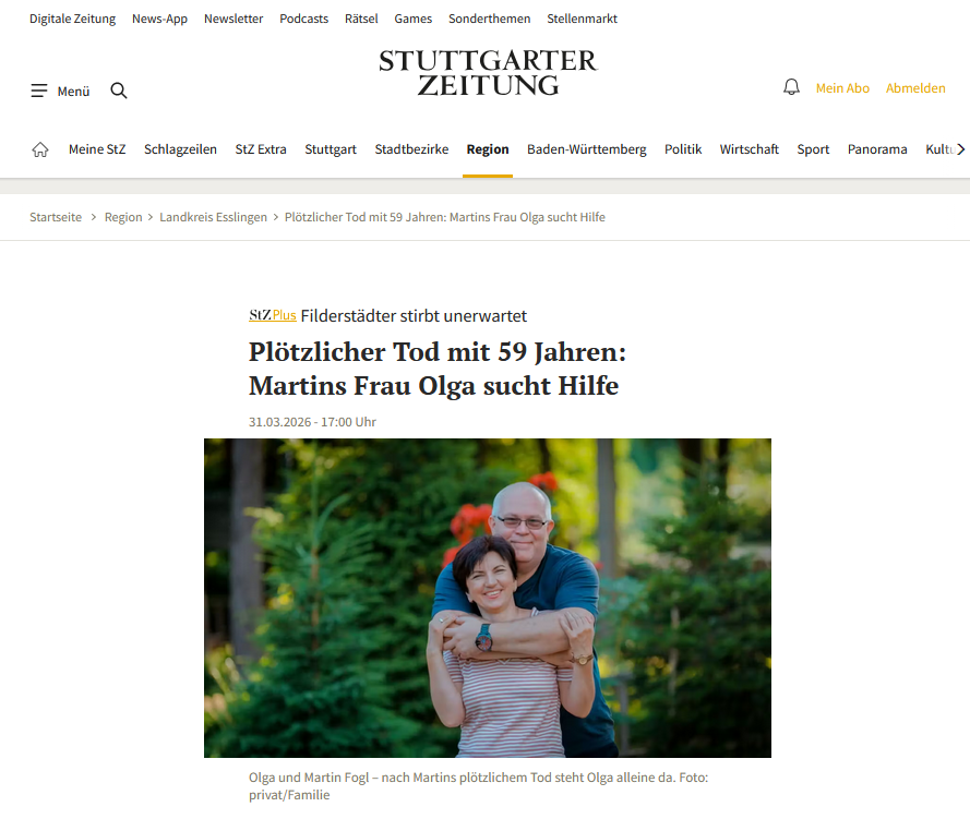 Martin verstarb am 15. Februar 2026 im Klinikum Esslingen, völlig unerwartet nach einer zweiten Lungenoperation. Nur zwei Tage zuvor waren alle noch voller Hoffnung.