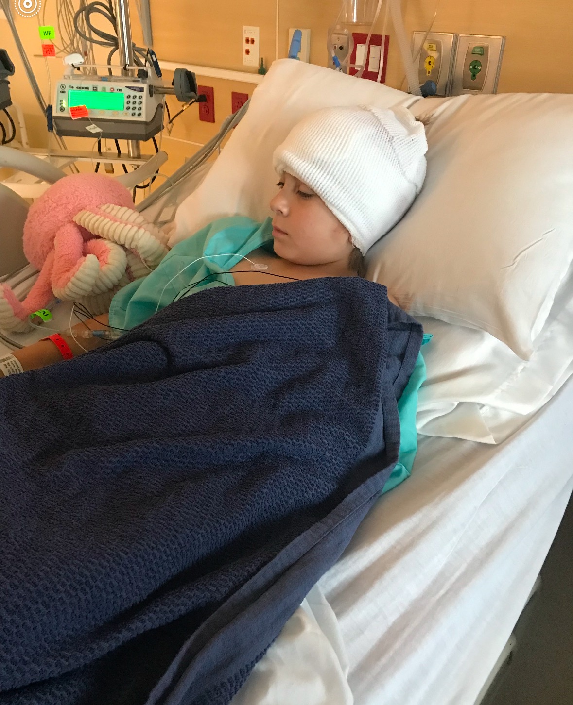 Jakob was transported from a local hospital to a children’s hospital, more than an hour away from home, where he would undergo his first procedure. After going through the nasal cavity to drain the infection, a tumor was discovered and subsequently removed. He was being closely monitored and received antibiotics intravenously. He had a great team of doctors looking after him.
