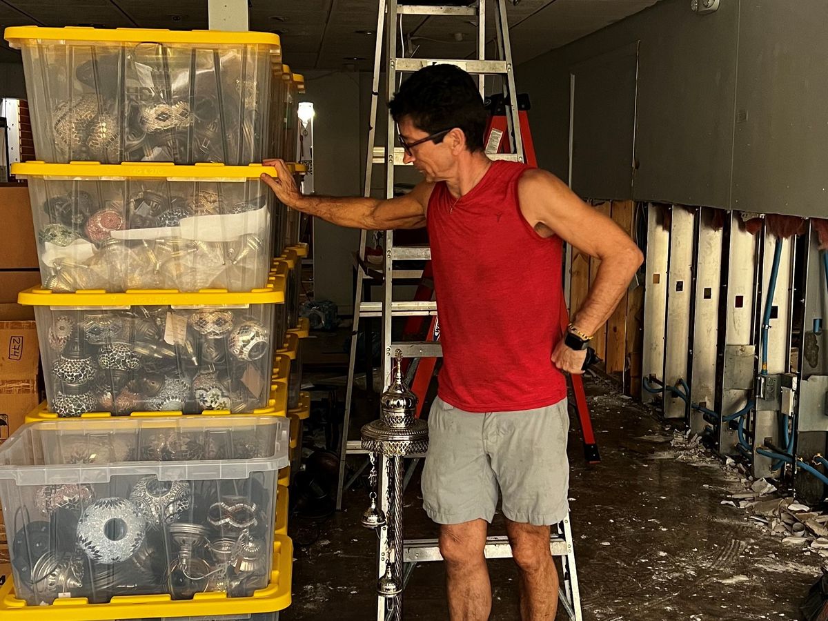 The recent Hurricane Helene severely damaged our store and merchandise. A storm surge washed through St. Armands island and severely damaged all of the homes and businesses. It has been truly tragic to witness. For Karavan, this meant 4ft of water sloshing through the store. Luckily our precious carpets were secure on the second floor. The damage on the ground floor included the destruction of the electrical system, breakage of inventory, potentially dangerous mold growth, and rotting of display cases and walls.