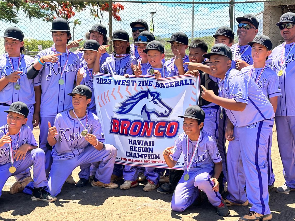 Kaua`i Bronco All-Stars sailed through the 2023 Pony Baseball State Tournament held this week at the War Memorial Sports Complex in Wailuku, Maui. With a victory over West Hawaii and Maui Host, The Kaua`i All-Stars secured their spot in the Championship on Monday where they triumphed once again to bring home the title of Hawai`i State Champions in the Bronco Division. The Kaua`i Bronco All-Stars will advance to compete in Moreno Valley, CA for the Pony West Zone Tournament July 20-23.
