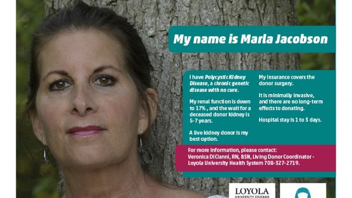 In 1996, after my youngest daughter was born, I felt a lump to the left of my belly button. It was tender, but not painful. When I went to my ob-gyn for my checkup, she said it was probably "stool" and not to worry about it. Fast-forward two years later: I made an appointment with a surgeon, who determined that it wasn't stool, and ordered an abdominal ultrasound. The results: Autosomal Dominant Polycystic Kidney Disease. The doctors said it was genetic and one of my parents must have it. They were tested (as was my sister) and no one had it, so I was told I had a gene mutation. The prognosis was scary, as 50% of ADPKD patients have renal failure. I found a wonderful nephrologist at Evanston hospital, and for many years he has been treating my high blood pressure, chronic flank and back pain. In 2005, he predicted that in ten years, I would be facing dialysis and/or a kidney transplant, and he has been pretty spot-on with predicting lab results, and the progression of the disease. Dialysis/transplantation is generally required at a GFR (glomular filtration rate) of 10-15. I'm at 19 currently; down from 24 one year ago. My doctor wants me to prepare for dialysis, but I will do everything in my power to avoid that, so my primary goal is a preemptive kidney transplant with a living donor, so I can live a long life and annoy my children and grandchildren for many years! I currently take several pills to manage the disease, and a new drug has been added to lower my phosphorous levels, and this regimen may "buy" me a year before my kidney function decreases. My immediate goals are to eat healthy , exercise when I feel up to it, and find a suitable kidney donor. I'm being evaluated for transplant and having prospective donors tested. My blood type is A, so a donor must be A or O to be a potential match.