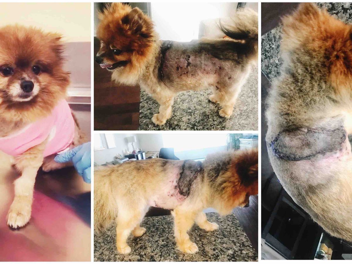 At Muddy Branch Vet Center, Mochi underwent a major surgery to stitch up the vast amount of lacerations & puncture wounds she incurred. The vet described this attack as the worst she’d ever treated due to her small size and how much of her body was injured. Mochi’s injuries required over 100 stitches, an overnight hospital stay, a second surgery a week later along with multiple medications and office visits for bandage changes every other day until her wounds are fully healed. She may still need a possible third surgery within the next two weeks.