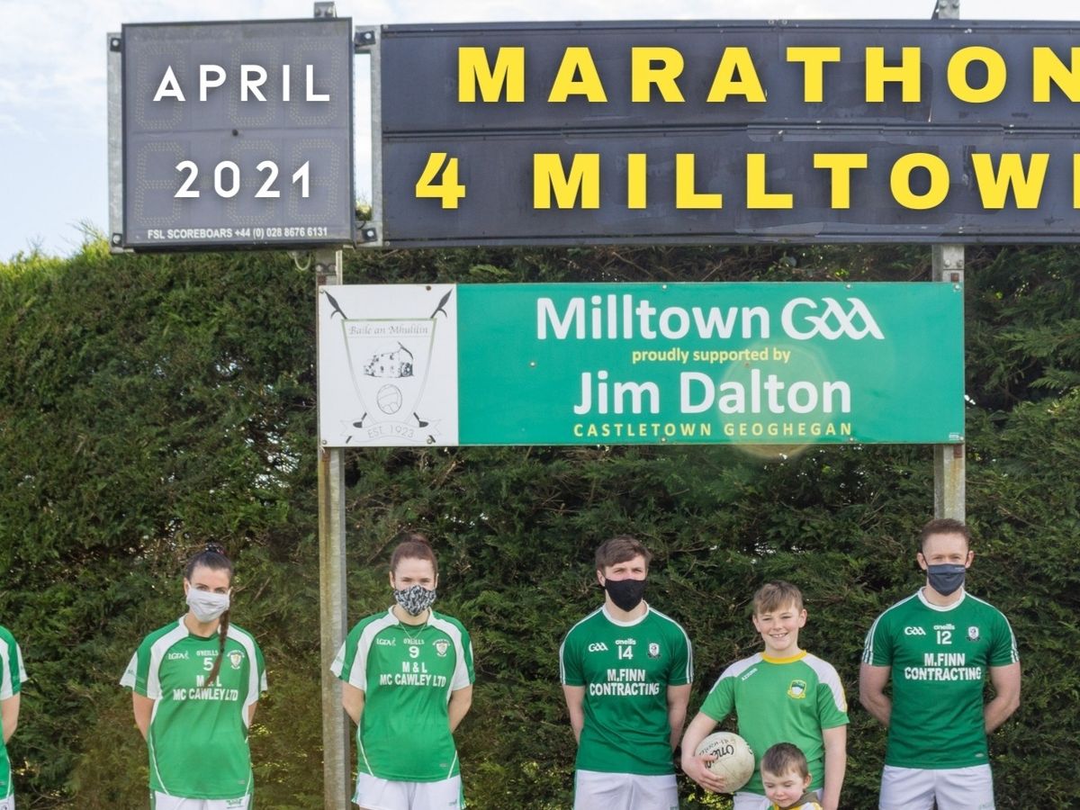 Milltown Gaa and Milltown Ladies Lgfa have teamed up to complete a Marathon For Milltown. This event will begin on Thursday 1st April and end on Friday the 30th of April.