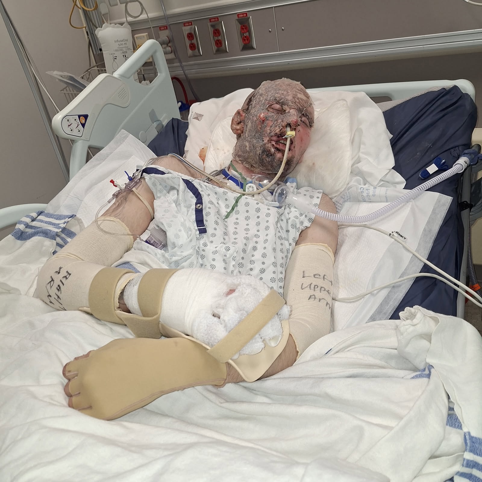 I know that there r people out there that thinks this id just a scam well i can honestly say its not its one of the worst things that could happen to to anyone.. AND for me to reach out to the public is very hard for me i don't like asking anyone for help. BUT THIS IS MY SON AND WE R ARE NEEDING UR HELP PLEASE I NEED UR HELP TO GO SEE MY SON IN VANCOUVER GENERAL HOSPITAL I LIVE IN HOPE BC I DONT HAVE CAR I HAVE TO TAKE THE BUS OR PAY SOMEONE TO DRIVE ME. WHAT I GET WILL BE USED FOR SUXH AS GAS FOOD ANYTNING MY SON MIGHT NEED . HIS HOME THAT HE LIVED IN WITH IS GIRLFRIEND SADLY TO SAY SHE PASSED AWAY MID DECEMBER WAS STOLEN FR THE HOPE VALLEY RV PARK. HE DOESNT KNOW YET I CANT TELL HIM RIGHT NOW. SO PLEASE I MY SELF AND HIM WOULD I BE SO GREATFUL FOR ANYTHING THAT U COULD DO FOR US :; Hello if u don't know me MY name marcia chipman mother and im starting this go fund me page because one of the best things I love the most ever in my life justin my oldest son was airlifted out fr hope bc in a helicopter to Vancouver general hospital 2weeks ago he was was spending a few nights with me and boudie his baby he just lost his girlfriend she passed in mid December grieving her lose. He was staying in a trailer i at my place and I woke up screaming went out side and he was on fire the trailer was on fire the screams of the pain he was crying mom help mom help me please mom im going to look like a monster. No no ur not I kept telling he was going to ok do say that. Got help running out on the highway flagging down a car going by to stop and 911 trailer is on fire and my needs help his whole body is brunt the screams my poor son was so badly brunt and being his mom and couldn't really do anything It broke my heart. I was told to sit to get my arms hands wrapped up they got cut brunt little breaking the windows looking for boudie his puppy his baby we couldn't find him we thought he might been in the burning trailer. I did what i could but it was so hot i couldn't see him or hear him it was late if he was in there. That and my son brunt so bad he said im not going to make mom yes u are we turned and we seen boudie sitting looking at us thank Good the fire department got there started putting the fire and working on justin trying to help him till ambulance to come the crys screams fr my son was so so horrible for a moms worst nightmare. So they got him to in the ambulance got ready to take to the airport to be air lifted to Vancouver general hospital. He's in icu sedated breathing tube. His had two surgeries already he had been in there close to 2 weeks and he will be there for aIong time I would like to ask if anyone mom to mom mom to son if there's anyone out there able willing to donate anything for my self get there to see my son and anything he might its going to be long recovery fr him and myself. Im just glad he is alive he's a strong young man has lots to live for his son he hasn't seen in awhile. Reece (dolly) PLEASE ME!! I havent done or wrote anything like this before also i don't like asking for help but please im asking now! I promise it will be used toward my son's well-being and transportation for me to get to Vancouver general hospital! I hope that there is hope out there to help me get there and be for there for him). AND thank you fr the bottom of heart if u could find it in ur hearts to help me and my son thank you God bless I would very much appreciate anything that would help me to be there for my poor child!!