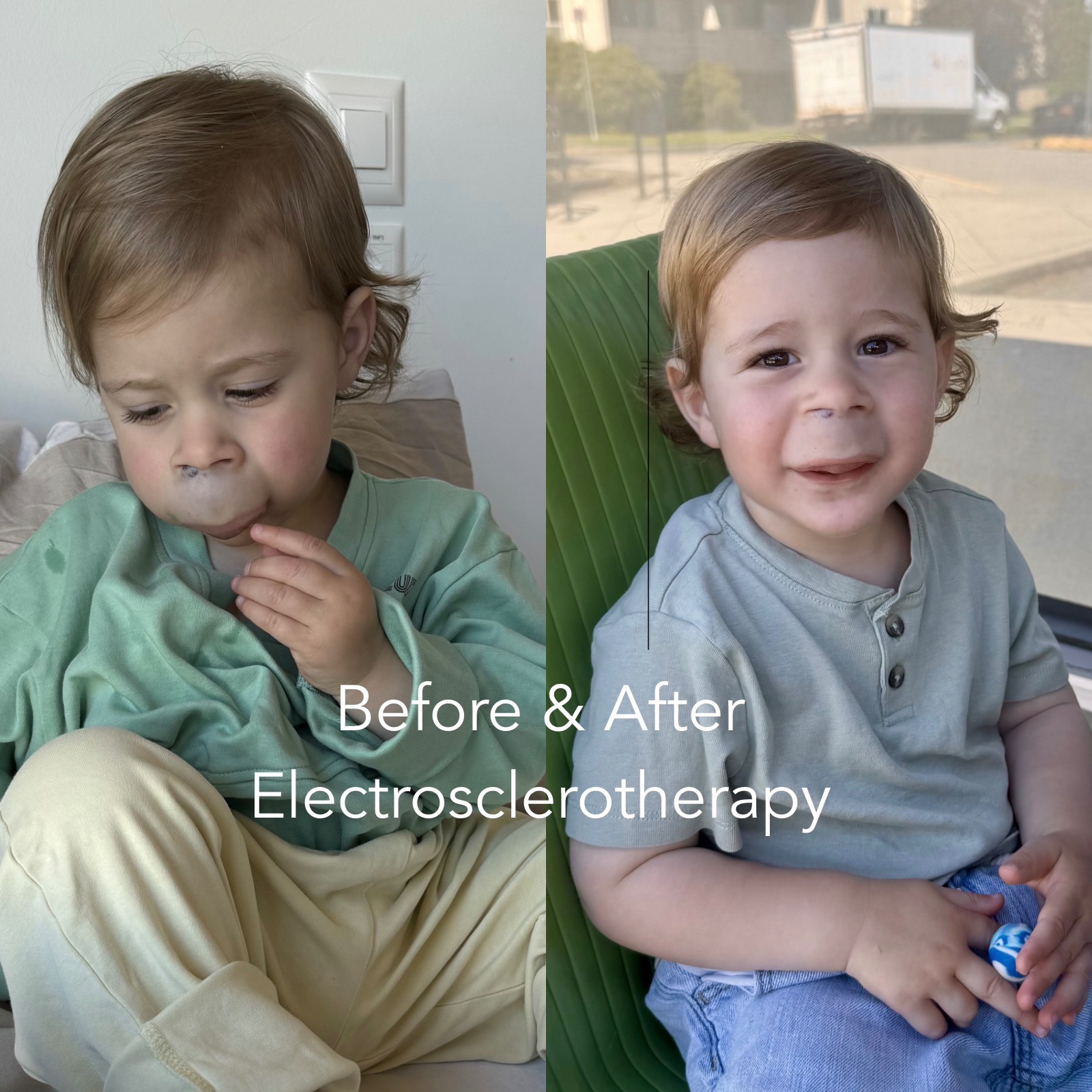 Last April, while living in Switzerland, we were fortunate enough to undergo one session of Electrosclerotherapy at the Children’s Hospital in Zurich. Within two weeks the change to Noah’s upper lip was obvious; for the first time, we could see his tiny top teeth when he smiled. The results were beyond what we could have hoped for, and we are desperate to get Noah back to Switzerland for another session.