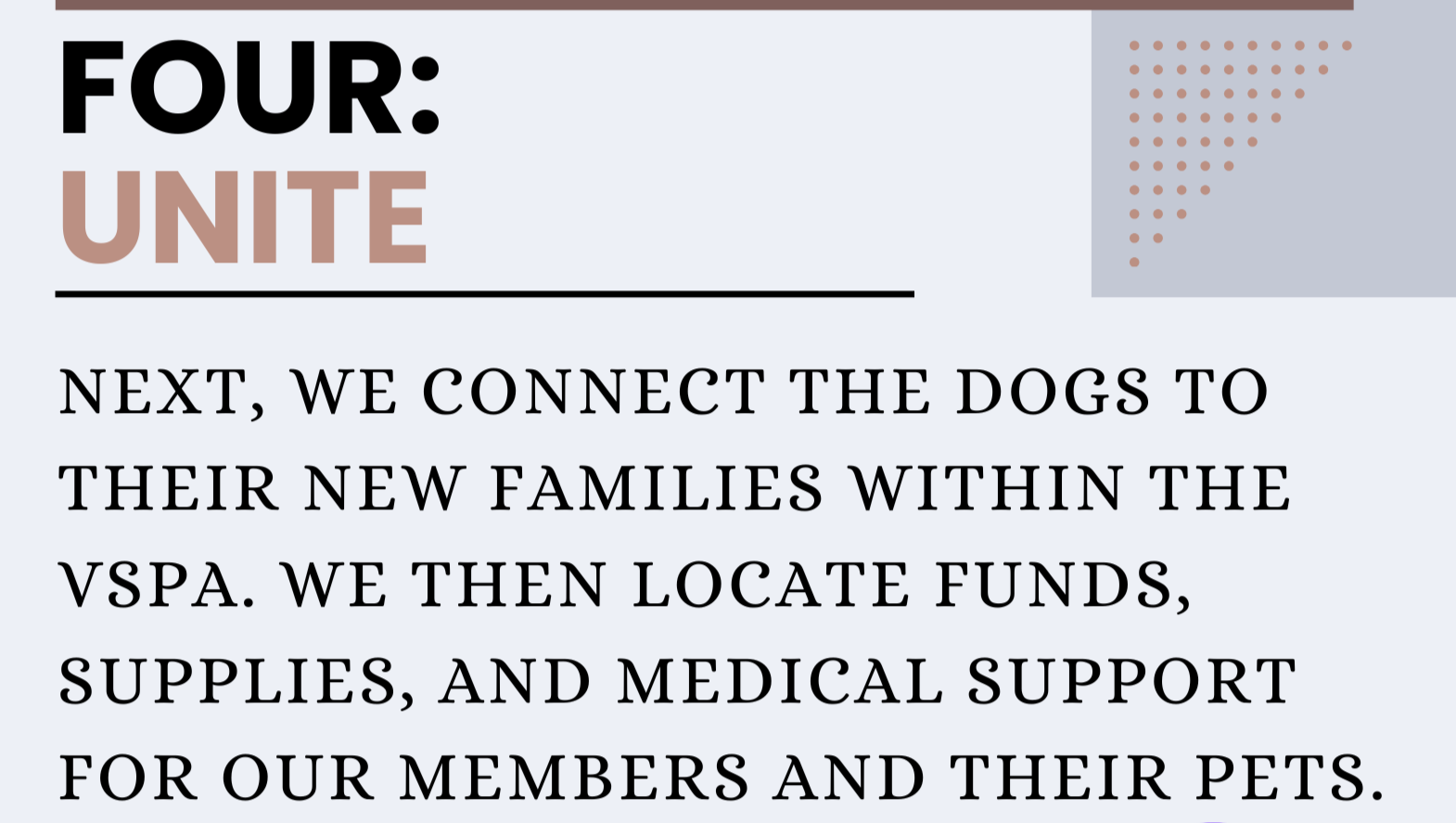We always have dogs in our intervention program still looking for homes. With donations, we can place more volunteers on solving these cases. Please help by either donating and helping us reach our goals in here or signing up as a VSPA member and helping us reach our goals out there.