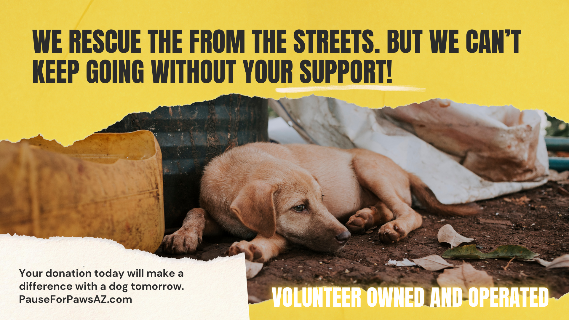 At Pause For Paws Animal Sanctuary, our objective is to assist overwhelmed shelters by creating a sustainable network of volunteers backed by partners we continue to foster. This will lead to a membership base that can assist and rehome any dog in need. Unlike typical rescues and shelters, with our volunteer-owned & operated system: we can never be shut down, de-funded, or overwhelmed. We will never give up. We will always be here.