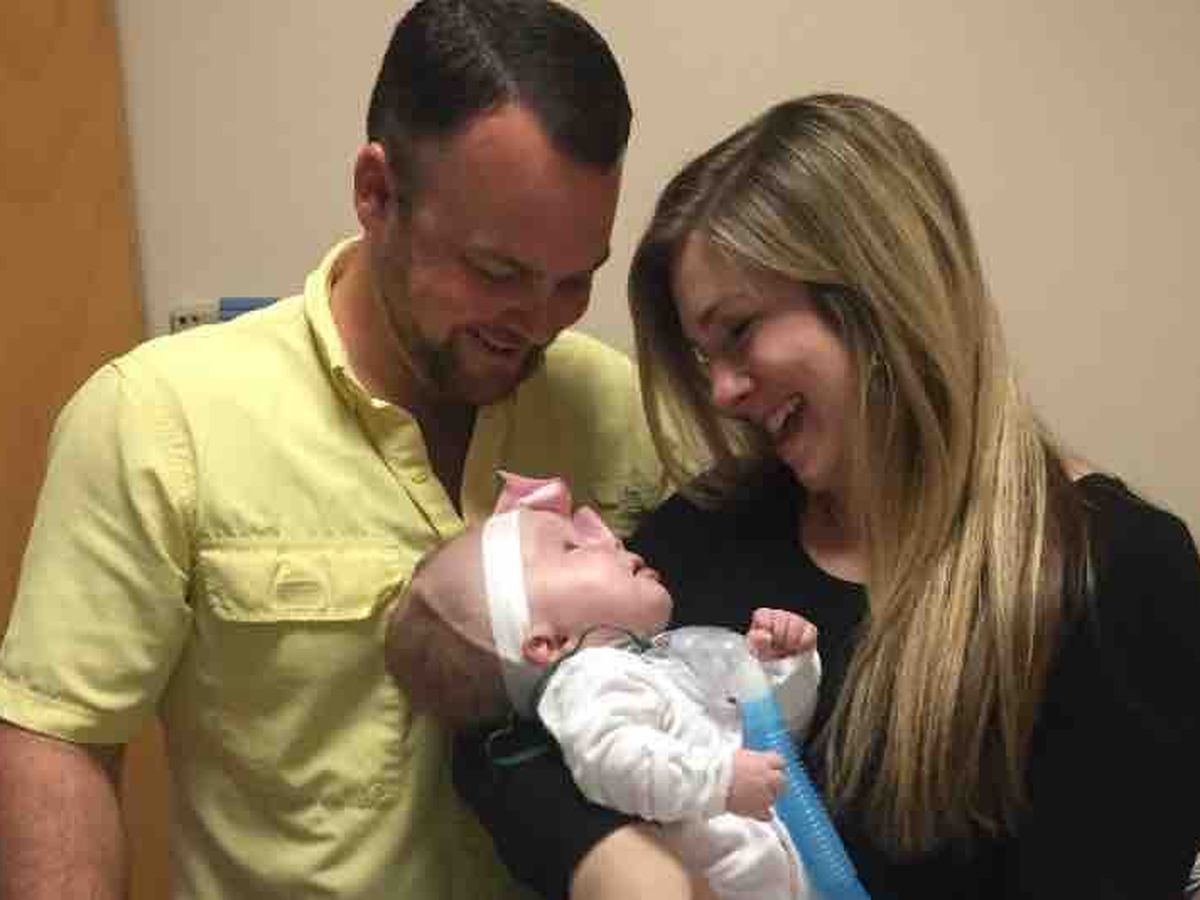 Paul and Megan tried for four years to start a family when God blessed them with their handsome, two and a half year old son, Luke. They were so happy when they found out God had blessed them again with another angel, Pearl. At 20 weeks, Paul and Megan knew they were in for a hard road in front of them when they found out sweet Pearl had hydrocephalus and was not sure if she would survive the pregnancy. But they took each day at a time and did not stop believing and praying for her health and were so excited to meet their sweet baby. Since her birth, she has defied any and all odds. She has had five major surgeries, her first being 9.5 hours long when she was just two days old. A team of four surgeons worked together to insert a feeding tube, attach her disconnected esophagus, close a hole in her trachea and place a reservoir in her brain to aspirate an accumulation of cerebral spinal fluid (CSF) caused by aqueductal stenosis. One week later she had a colostomy. Her third surgery was performed two weeks later and allowed neurosurgeons to place a VP shunt in her brain to encourage the drainage of her additional CSF. Following her shunt surgery she had a tracheotomy done to stabilize her respiratory issues. Once her airway was safe and stable, neurosurgery performed a craniotomy, a procedure used to release the frontal bone of Pearl’s skull to allow her brain to grow.