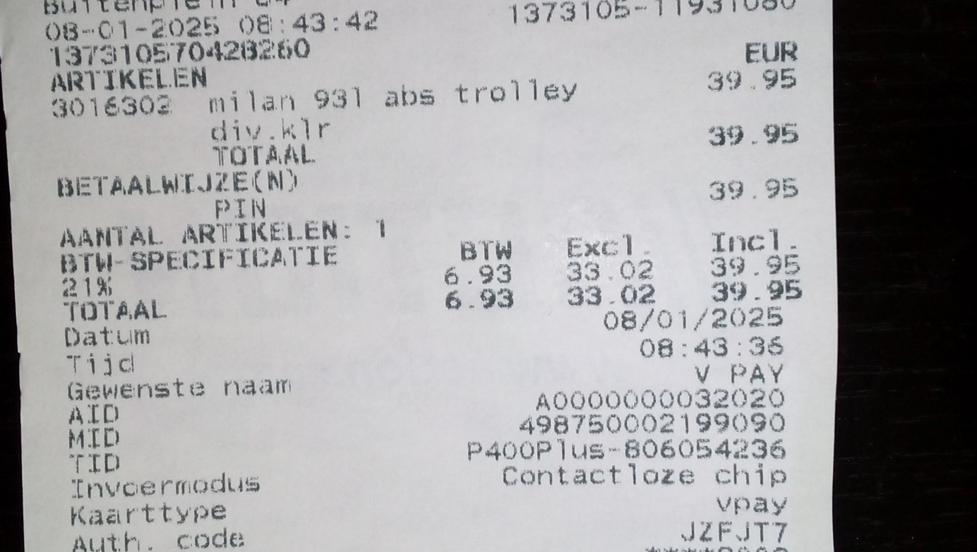 • New suitcase for my laptop. The wheels are so worn that I have to half-carry it now. Can't do a lot of regular weight-carrying any longer - is asking for problems - so it has to be on wheels. Action's are great. I should probably have gotten one from Action when I replaced my BenQ case before when the wheels of that one broke down. I won't really need it any longer once I have a vehicle, of course. I do my best to buy or collect (from the streets) only items that I can also use a lot in van life.