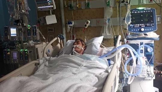 Johnattan no ha caminado desde mayo. Ha estado conectado a una sonda de alimentación durante meses. Recientemente pasó la prueba de deglución y finalmente puede beber líquidos. Ha perdido todo movimiento en las piernas y sufre dolores constantes. Ha perdido una enorme cantidad de peso y la mayor parte de su cabello.