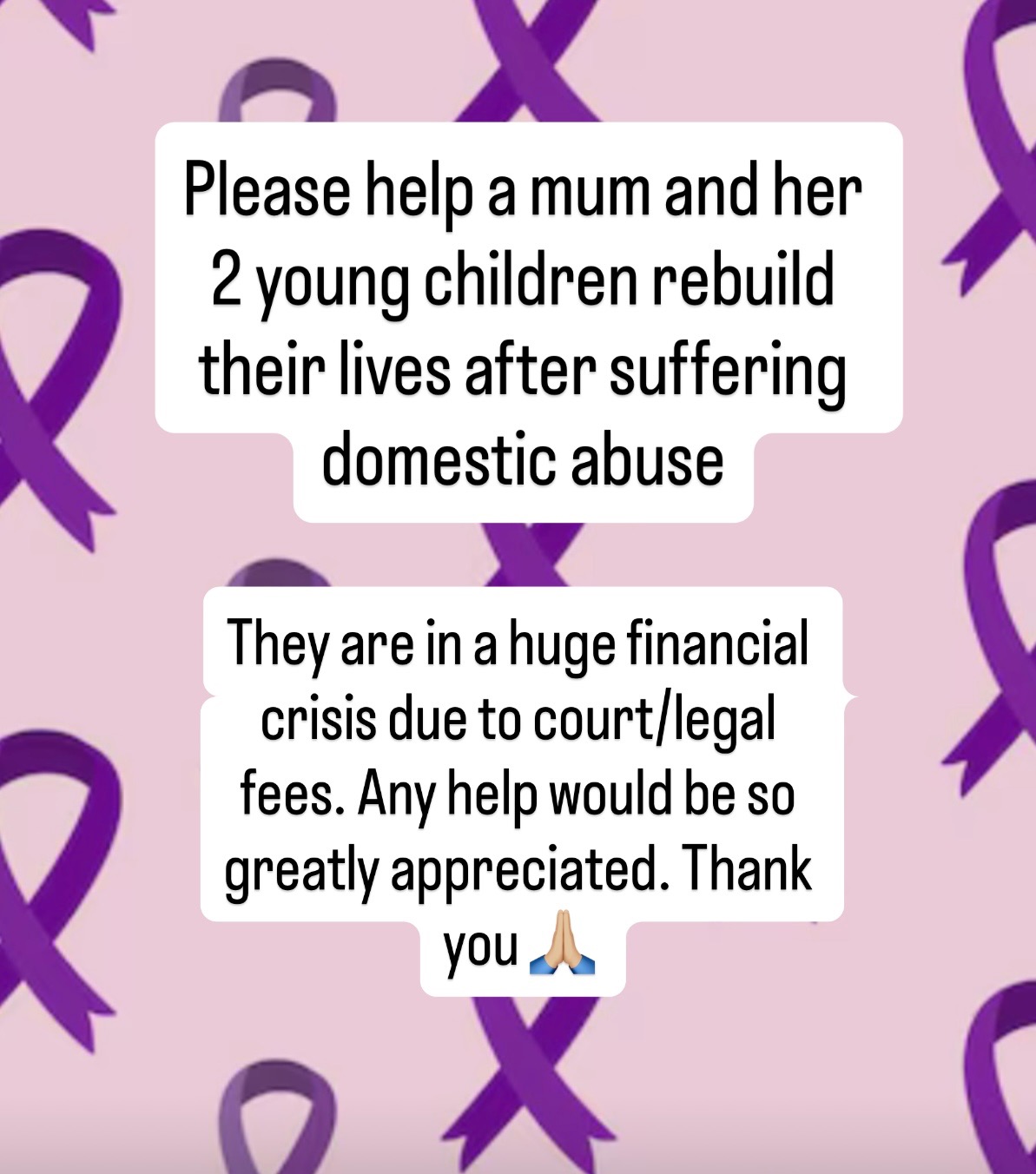Please if you have the means to, help support my friend and her two young children get a break in life and be able to move on safely without this huge financial burden.