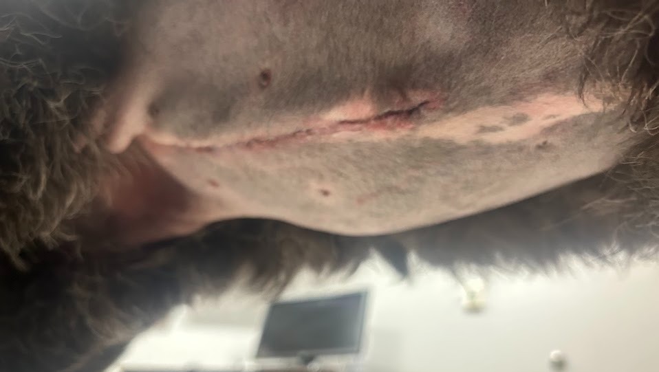 I visited her on Friday at 8 PM, and she appeared much brighter. Although she was still not quite herself and had a large incision on her stomach, the vets assured me she was healthy and believed she would make a full recovery.