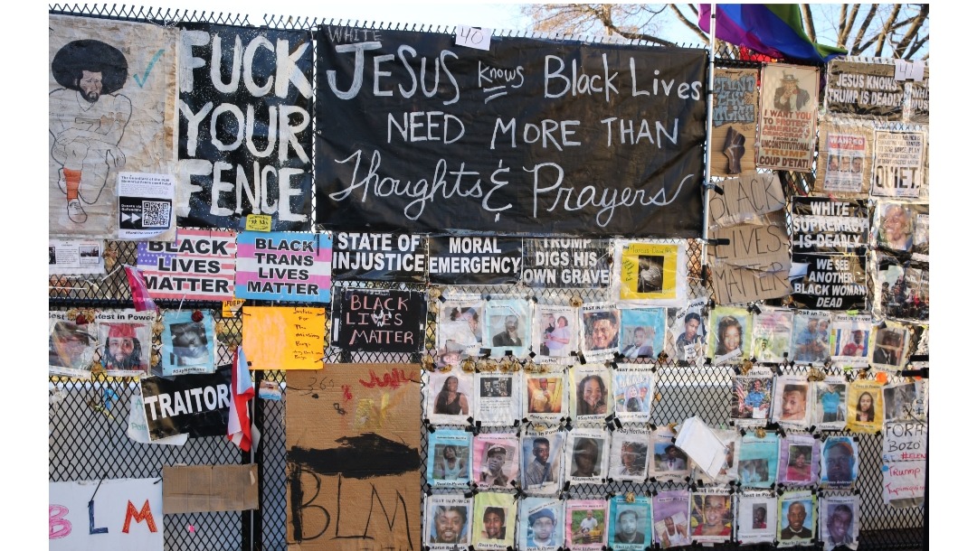 The fence would eventually become known as the Black Lives Matter Memorial Fence. It was an organic community, that sprung up, after protesters would leave their signs behind after myriad protests. Subsequently - individuals from the DMV and around the country, left their messages, voices, stories of their families; photos and art as protest, for the continued mistreatment of BIPoC and resentment to the fence's presence. The fence became a memorial to the victims of police brutality and injustice and a push back, to encroaching fascism, of the tRump administration.
