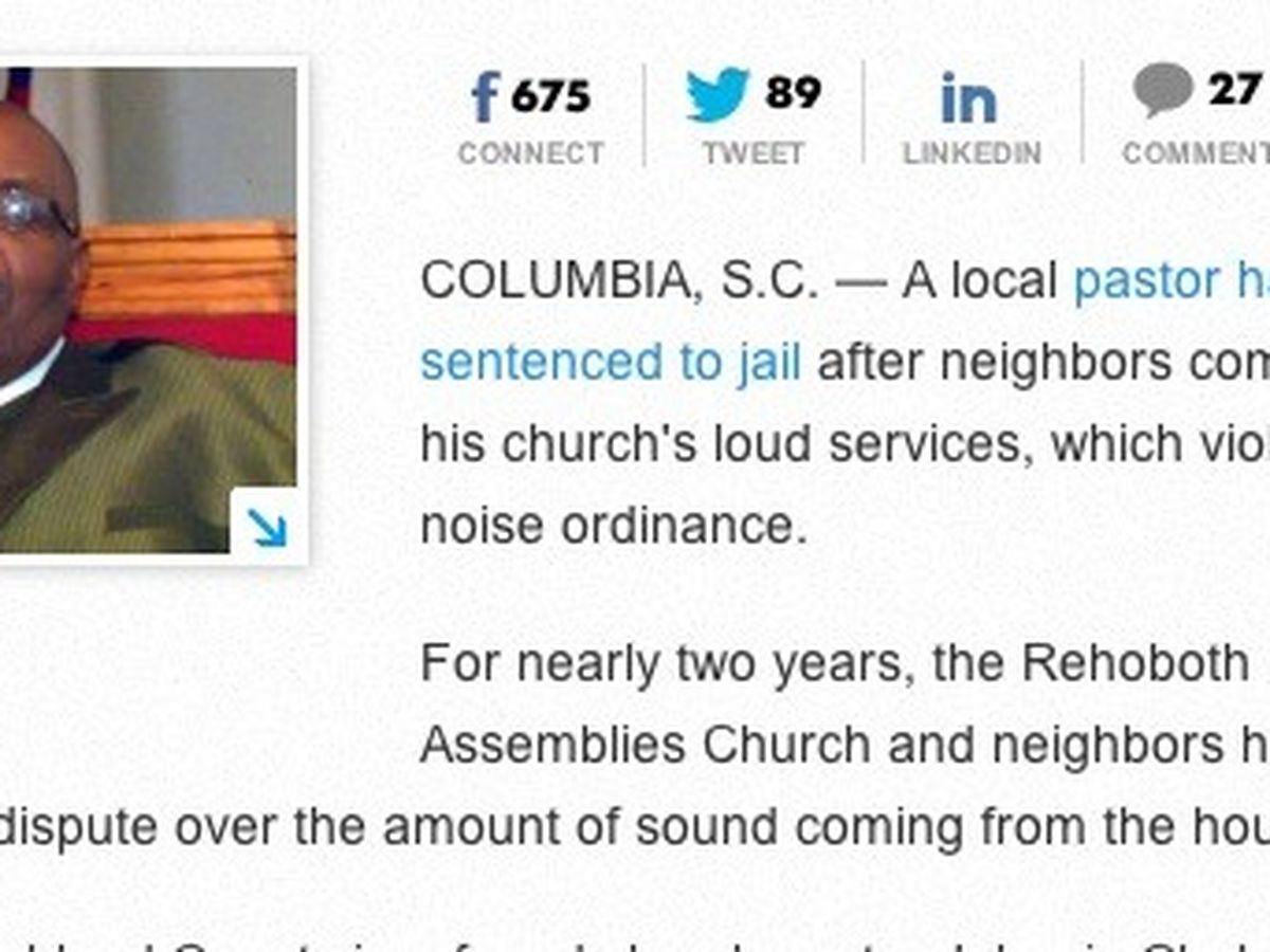 In a day in which the church of God has been constantly targeted, a great blow has been dealt. Apostle Johnie Clark, Sr. Pastor of the Rehoboth United Assemblies in Columbia, SC has been jailed for having too noisy of a worship service. The Pastor has been jailed and NEEDS THE BODY OF CHRIST'S HELP