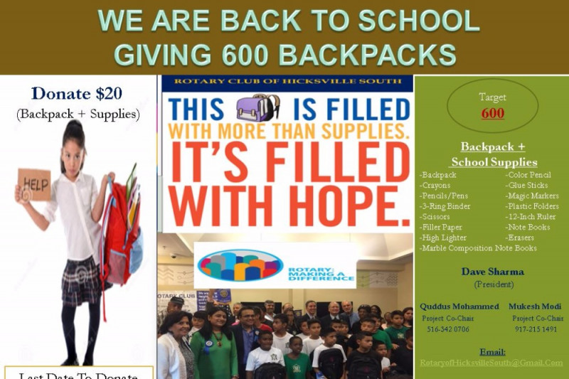 We are Back to School giving 600 backpacks to kids on long Island.