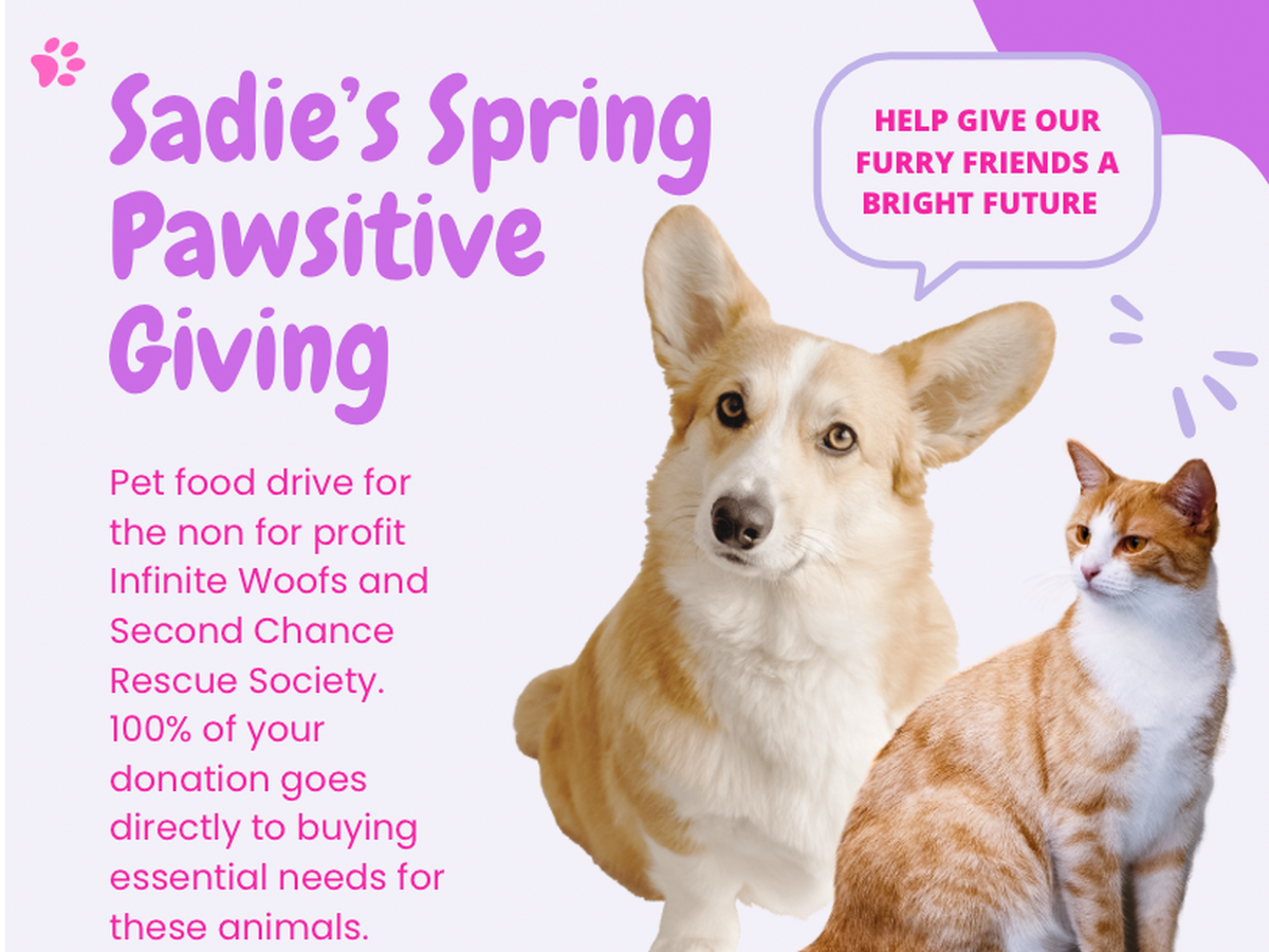 Hello everyone! My name is Sadie Friesen, and I am the 2025 titleholder of Miss Queen Teen Alberta. I have dedicated part of my platform and advocacy during my reign to supporting animals in need. This spring I'm raising funds for Infinite Woofs and Second Chance Animal Rescue Society who currently have 351 animals currently in care. Both incredible organizations are dedicated to providing essential food, medical supplies and care items for the many animals currently in foster care. These foster homes graciously open their doors to animals in need, but the organizations rely solely on donations to support them.
