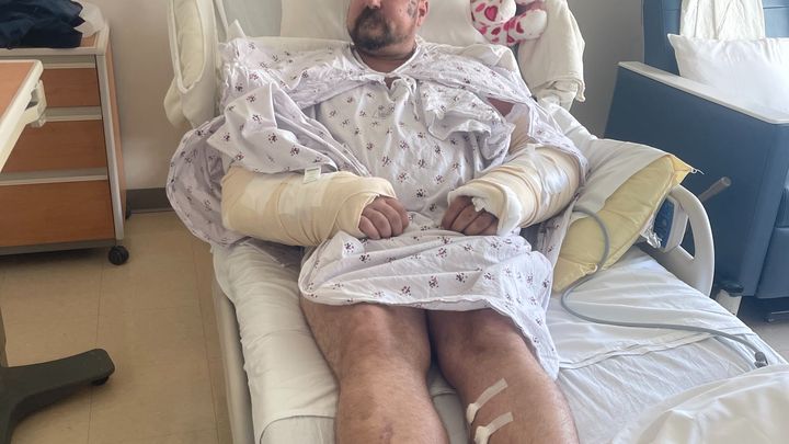 Hello my name is Eric G Smith I am a resident to downtown Los Angeles California I was in an accident driving my scooter one night in a non-lit Bike lane I hit seven layers of steel manhole coverings I flew 12 feet in the air and 15 feet out both my arms are broken in one arm I missing the bone they put steel plates and bowls in the other arm my elbow is fractured and my wrist is fractured I cannot eatBy myself I am hospitalized I’m gonna convalescent home getting as much help as I need but that’s not enough I have bills and expenses please help me as much as you can do not give more than you can afford God bless thank you