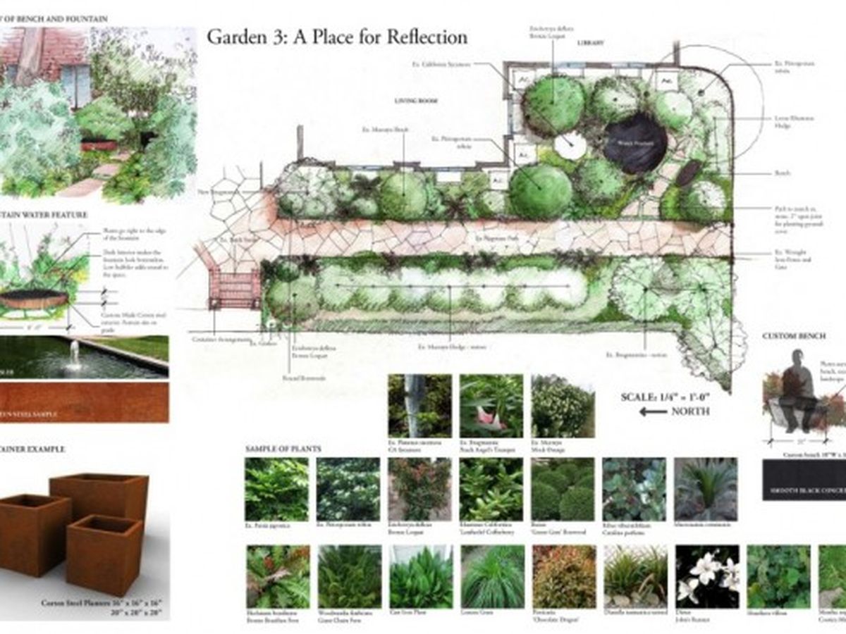 2) A sketched vignette of the showcase garden with a personalized note of special thanks.
