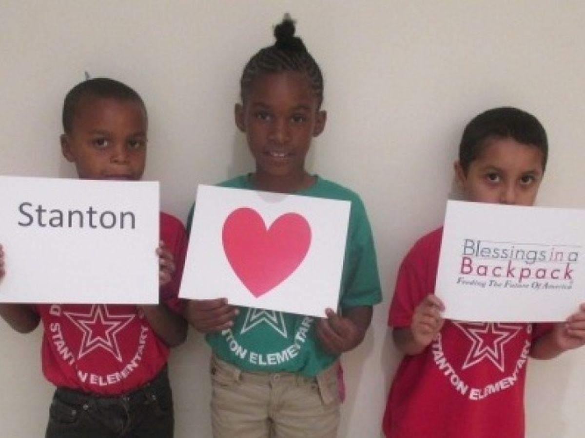 That's when we met Blessing in a Backpack. BIAB began September 2013 feeding 47 students at Stanton. Each week of the school year, backpacks are filled with food for delivery to the school on Friday, where parent volunteers distribute the individual backpacks to students who are part of the program.