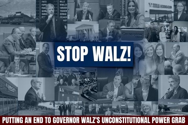 Minnesota State Legislators Rep. Steve Drazkowski, Rep. Tim Miller, Rep. Cal Bahr, Rep. Jeremy Munson, Rep. Shane Mekeland, Rep. Mary Franson, Rep. Eric Lucero, Rep. Joe McDonald, Rep Jeff Backer, Rep. Glenn Gruenhagen, Sen. Scott Jensen, Sen. Mike Goggin, and Sen. Andrew Mathews are filing a lawsuit to challenge Governor Walz's authority to declare a peacetime emergency and unilaterally write laws.