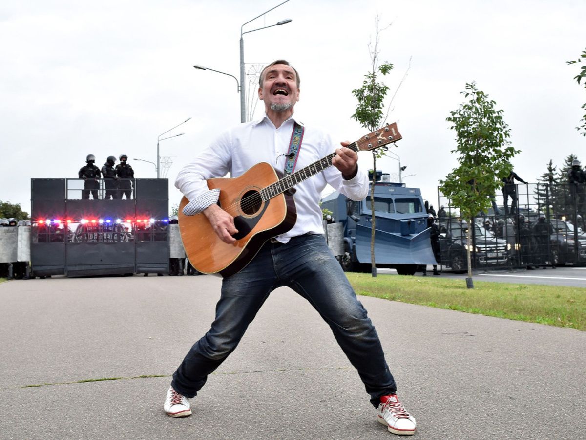 Thousands of stories on social media document the abuse of protestors by police.Pitor Paulau (Pit Pawlaw is his stage name) is spectacularly on the front lines of the current civic unrest in Belarus. Pit first performed “Three Turtles” as a song of dissent in 1990 as an original member of the band that made it famous, N.R.M. During demonstrations Pit sings the song to the riot police - with their tactical vehicles arrayed against him – as if to ask them to join in the singing. Pit’s performance reveals his belief that music is the bridge that can bring his country together.