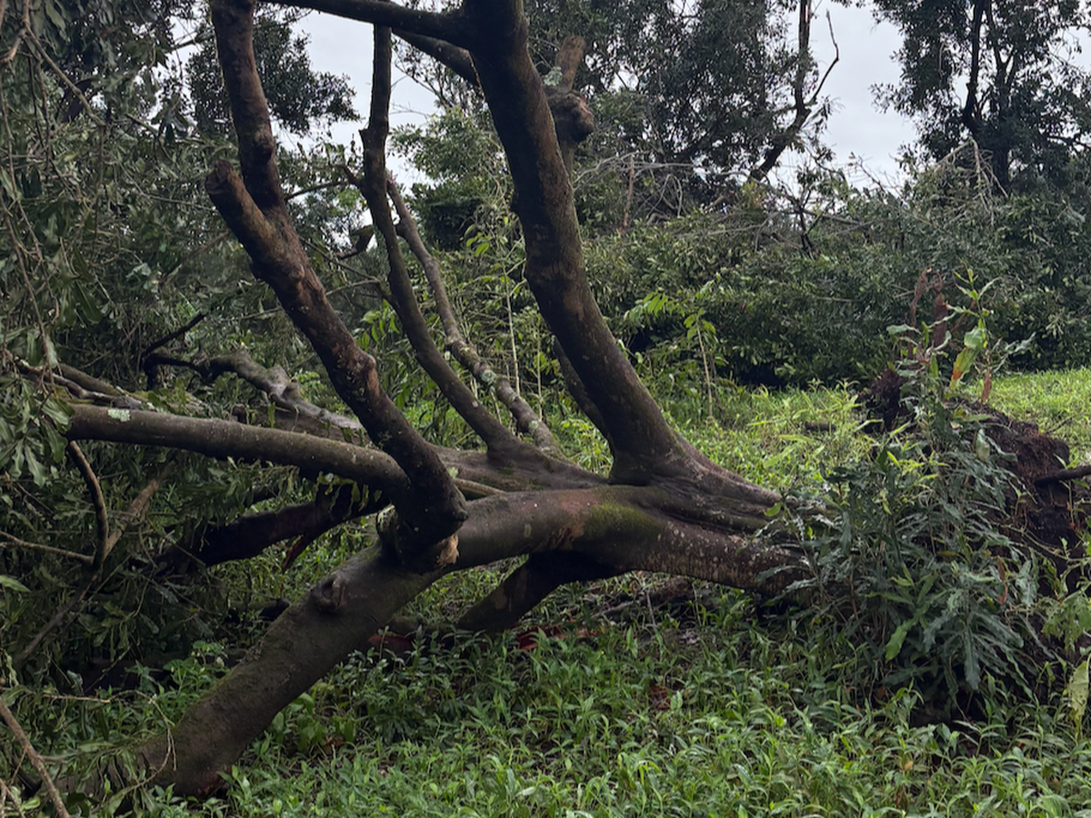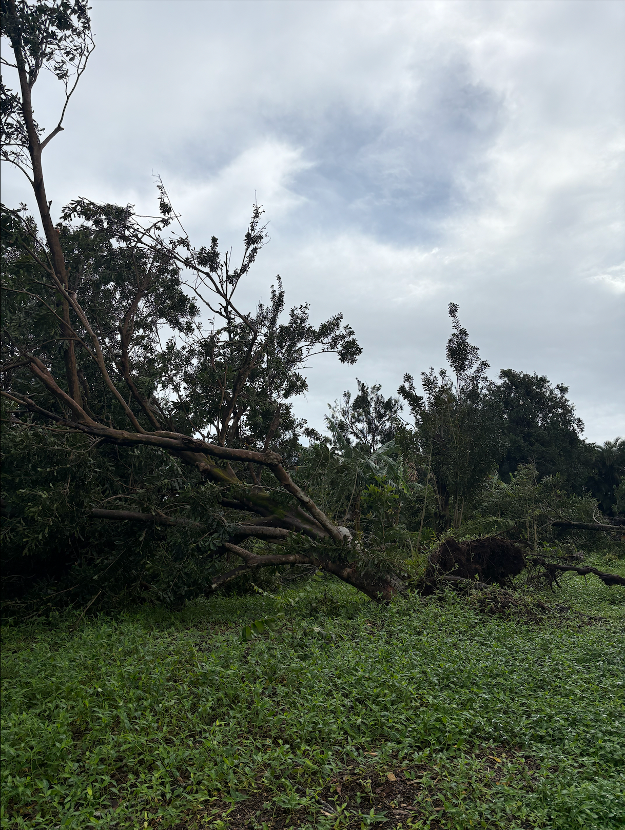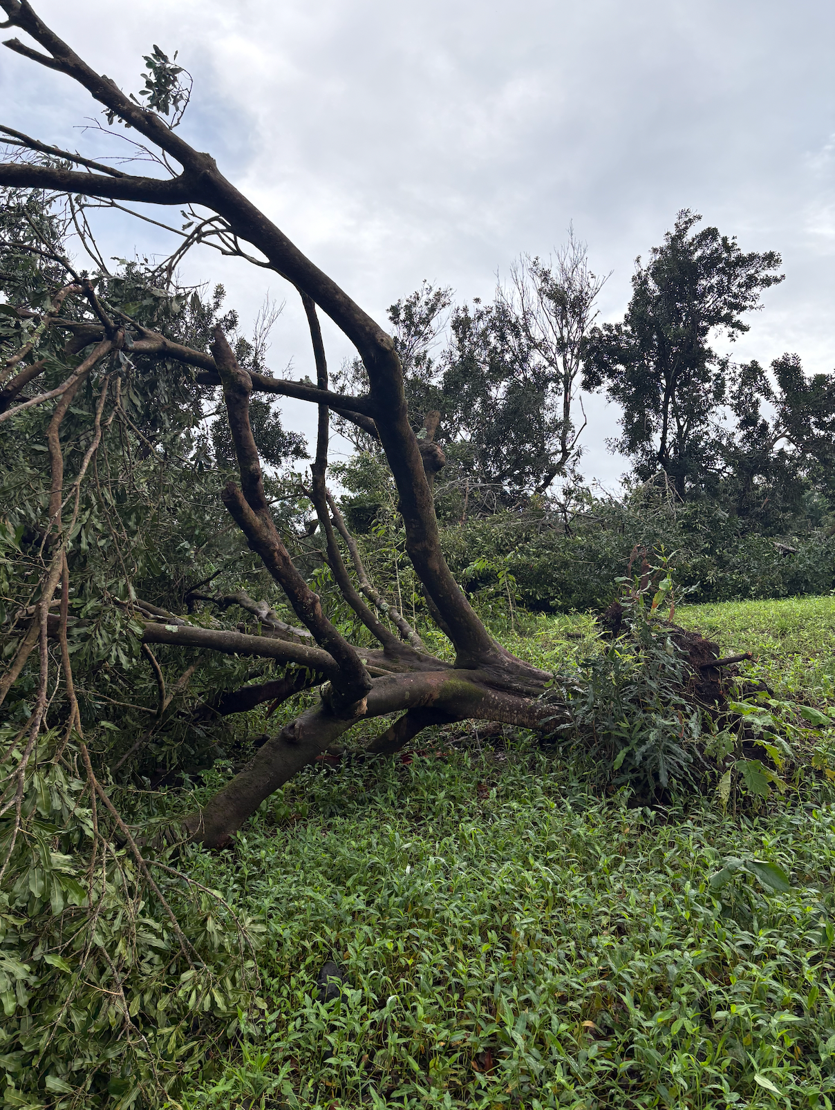 Severe winds from a record-breaking Kona Low storm devastated the orchard, taking down at least half of their mature trees. While their home and this past year’s harvest were spared, the mac nut tree grove, the heart of the farm, was deeply impacted and will be forever changed.