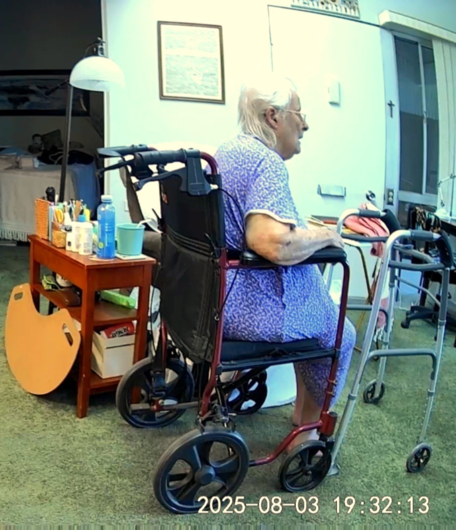 Our Mom’s weakness has now progressed to the point of 100% dependency on caregivers and being confined to a lift-chair in her living room. Because she is no longer able to walk on her own, a transport-chair is now her only means of mobility.