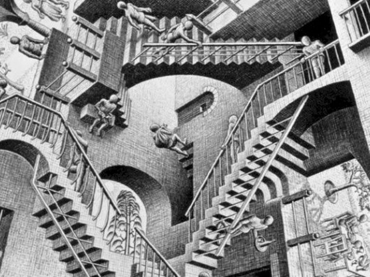 Photo above: M.C. Escher's Relativity, one of the art works that serve as Lizette's literary muse.