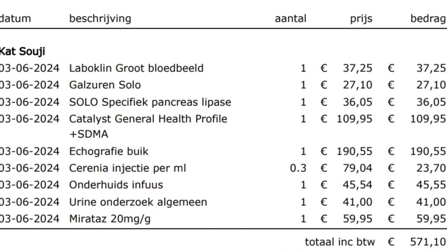 Om een idee te geven van hoe hoog die kosten kunnen oplopen hier een factuur van toen zij vorig jaar ziek was: