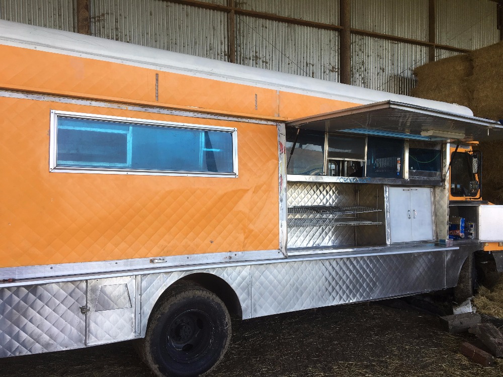 The general cleaning has started and there is much more to do to make this truck the classy party mobile its meant to be. While the bright orange is eye catching, I'm thinking a coastal sea foam green. Painting this 26' beast isnt cheap and neither are the permits to get us legal and ready to hit the streets! Any donations will go towards the painting and fees as well as smallwares and all the bits that make a mobile food business run.