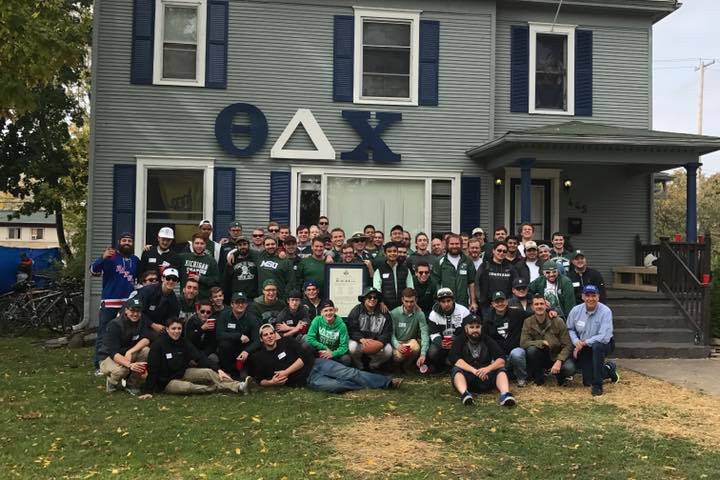 The Gentlemen of the Gamma Trition charge of Theta Delta Chi at Michigan State have been living at 445 Abbot Road in East Lansing since 2006. The house itself has been standing since the early 1900’s. The house is located 5 minutes from campus, and is even closer to the local watering holes like Rick’s and Harpers. Abbot Road is one of the busiest streets in East Lansing, so 445 is the perfect place to be on game day in the fall, and on holidays like Halloween and St. Patrick’s Day. The house has 8 bedrooms capable of housing 14 people comfortably on the second and third floors. The first floor has an open layout with a large front room, a smaller bar room, a back room, and a kitchen. The house has a perfect layout for a gathering of East Lansing’s finest Spartans on a Friday night. However, seeing as the house is nearly over 100 years old, things are starting to break down. Recently as a brotherhood we have put a lot of TLC into improving the house that we love so much. We re-did the kitchen and bathroom over the last year, which were both desperately needed. When we returned from winter break this year, we realized that when people entered the front room, it felt like a trampoline. It would visibly move up and down when people walked, or jumped, on the floor. The problem progressively got worse as the weekends passed, and it got too big to ignore. Upon investigation, we discovered that many of the beams that support the floor were cracked, broken and need to be replaced. Usually, we can handle the home improvement. We have survived winter months without heat, stints with no hot water, and many broken doors and holes from the wonderful visitors that frequent our house. We have tackled all previous problems on our own, but seeing as none of us are licensed contractors, we find ourselves in a tough position on this one. The attempt that we made to fix it did basically nothing. Hiring someone to do a job, the labor, and the materials are very expensive and money is tight and as you all know, the bills don’t stop coming. If we don’t get it fixed, we would risk falling through the floor and possibly losing the house. We estimate that the job will cost about $2,500-$3,000. The contractor we spoke to also said the job can be completed in a weekend, so the sooner we get the money the better. We have a car wash planned to raise some money and are also trying to front some of the money on our own. We have all put our hearts and souls into this house, and we want to preserve it for future Theta Delts. We are asking that you help us out with this! Any kind of donation would be greatly appreciated because every dollar helps us get closer to our goal. Thank you in advance!