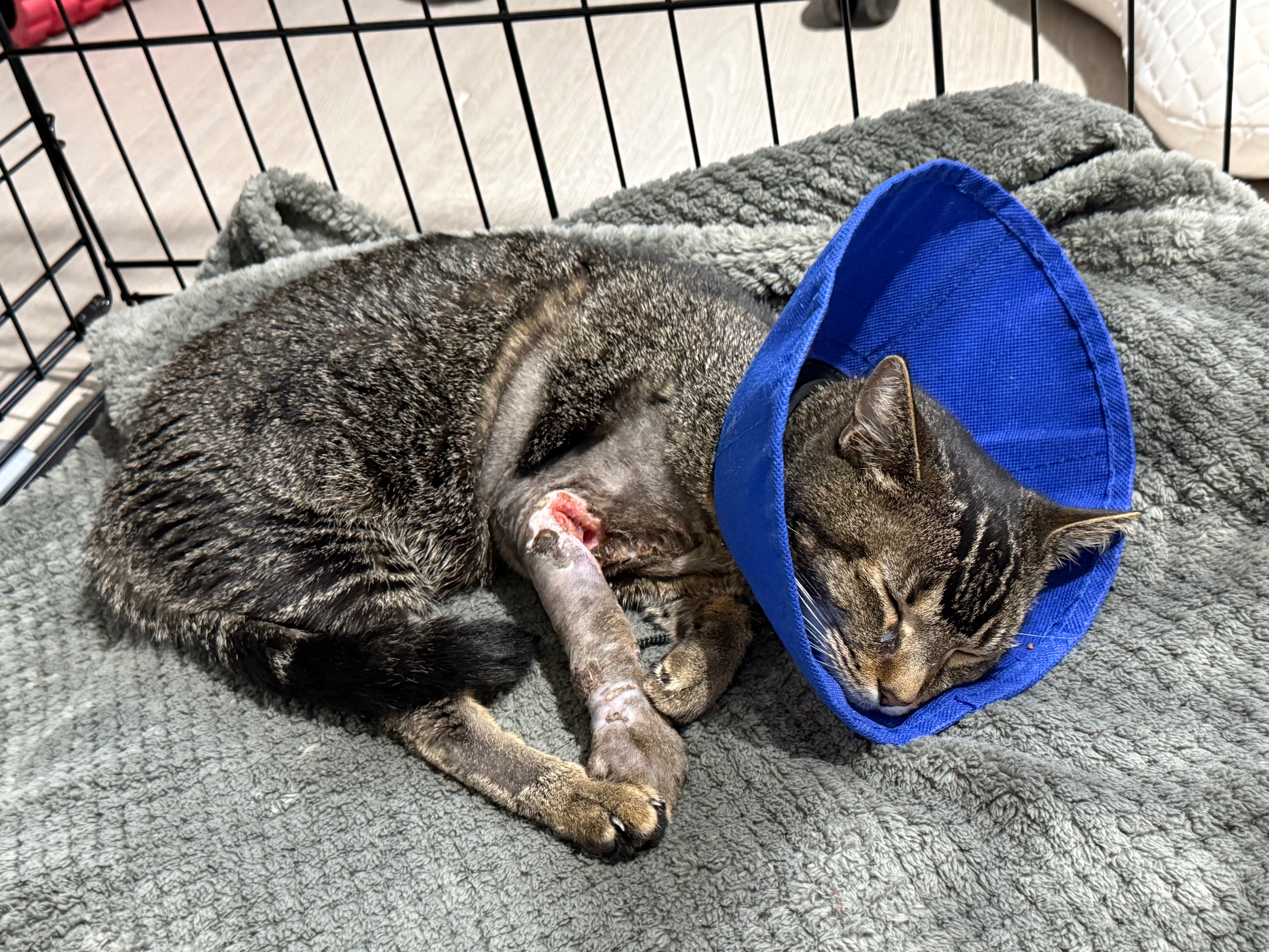 Since then, my infected leg has been amputated and my front paw repaired with a screw. Thanks to her love, I now have a second chance at life — but my recovery will be long, and the vet bills are huge: £9,000, with £4,000 already paid upfront. She doesn't quite know how she's going to make the monthly payments.