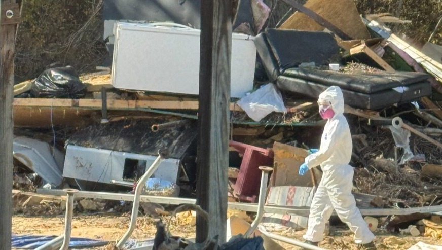 They are seeking refuge at a friend's home 6hrs away and making regular frequent trips back and forth working to retrieve whatever they can, in hazmat suits, with no warm real beds to sleep in and running water during the hardship.