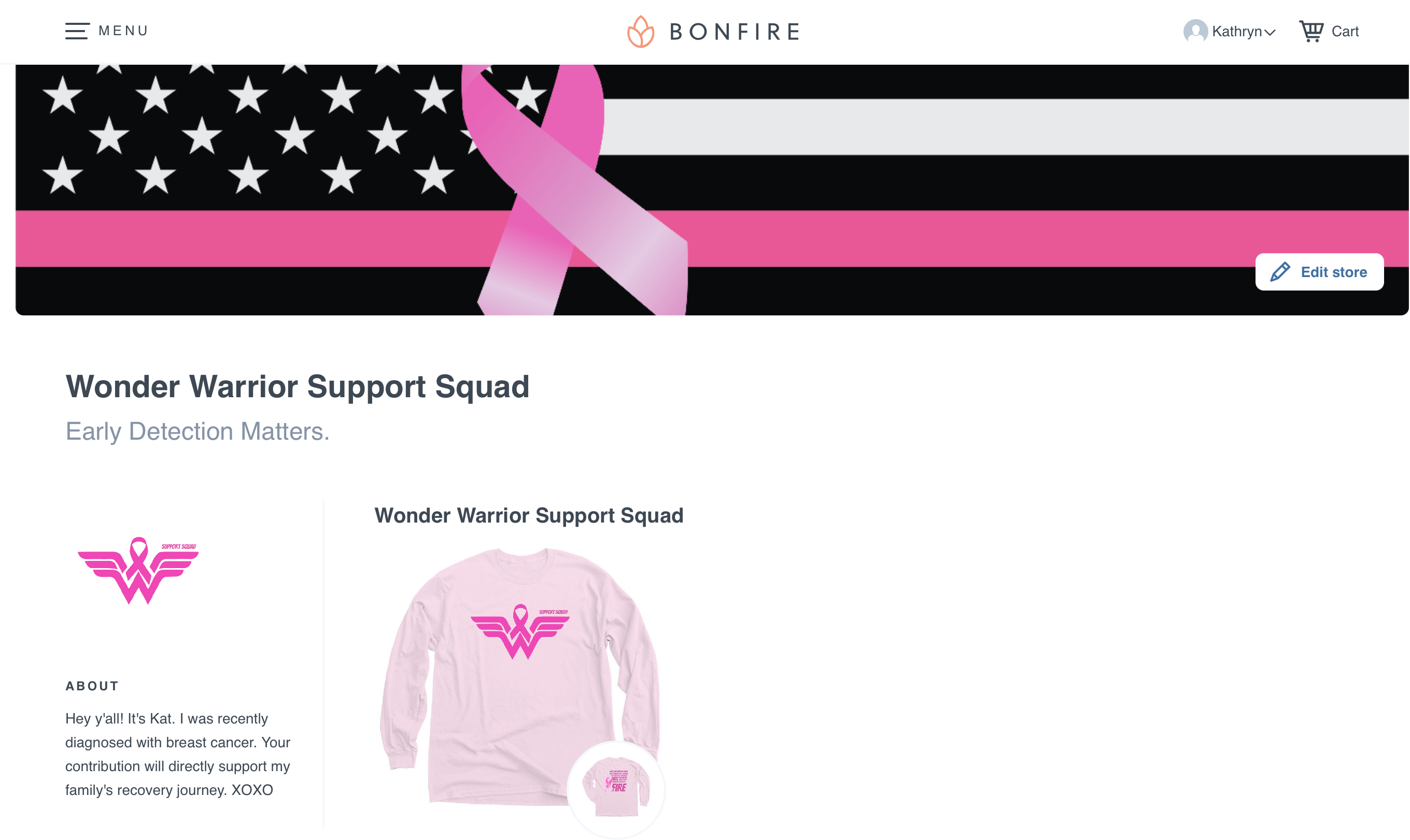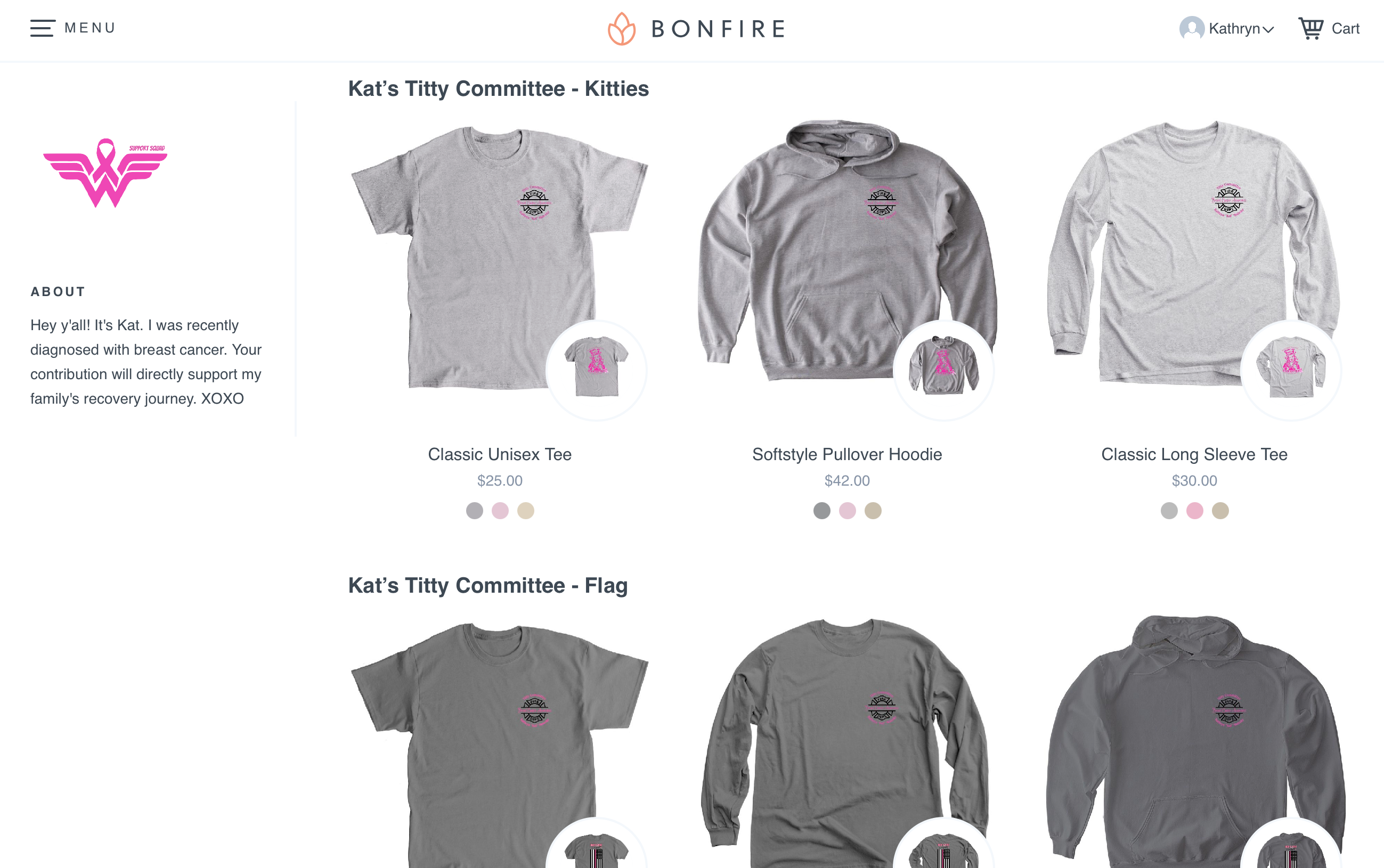 If you purchase anything from the Wonder Warrior Support Squad store or donate to our GoFundMe, you will directly be affecting my family's chance at a successful recovery and a hopeful future. I thank you in advance for your generosity. The money we raise will pay for copays, medical necessities not covered by insurance. It will help pay for expenses accrued from time off from work and it will invest in our future to remain healthy. If we don't need what is raised, we will donate it back to breast cancer research. In addition, when you choose to wear a Wonder Warrior Support Squad shirt (purchased through Bonfire) you are choosing to honor someone who has battled breast cancer. It proclaims to the world, keeps their names alive, and highlights their resilience, their bravery, and determination to keep moving onward and upward.