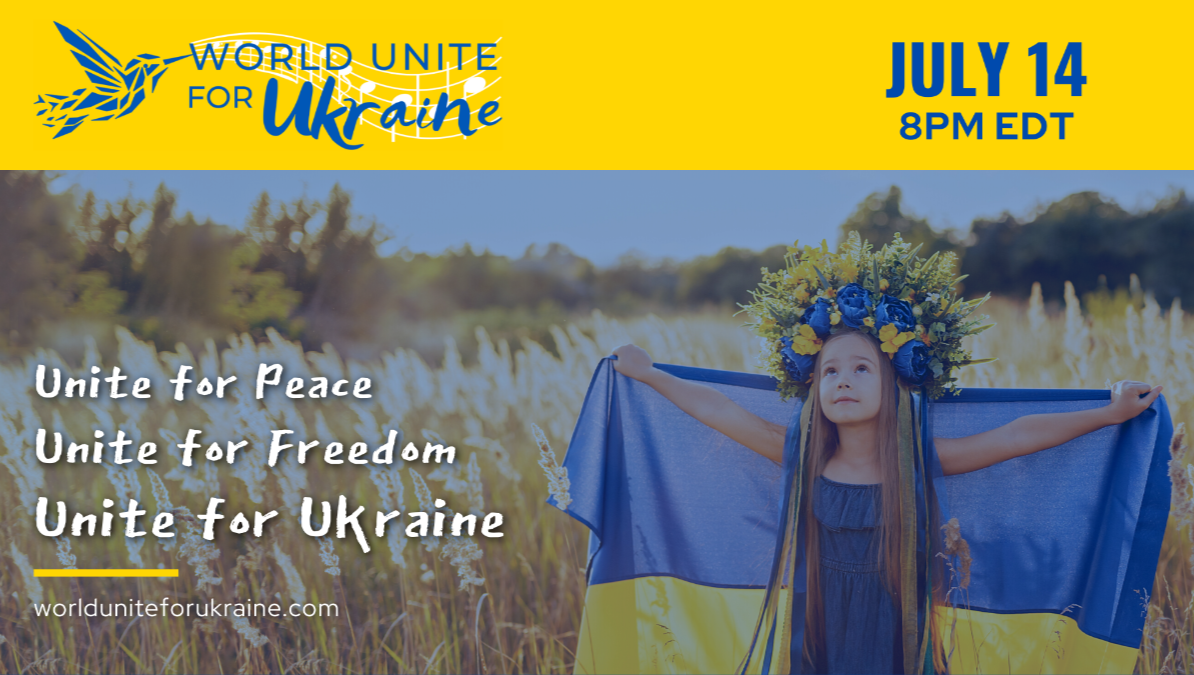 On July 14, 2022, a global community of top international artists, civic activists, thought leaders, actors, athletes and volunteers from the United States, Canada, Israel and throughout Europe will come together to support Ukraine during this global 90+ minute event .