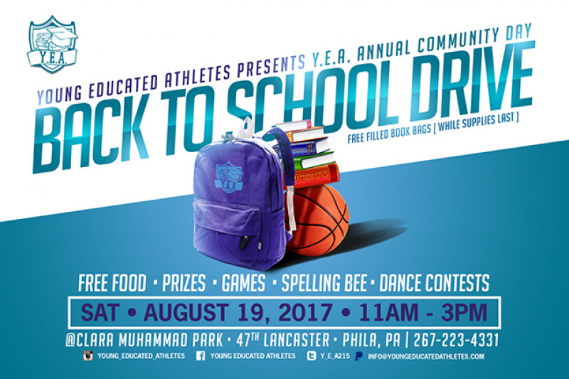 Y.E.A. will be hosting our 3rd Annual Community Day "Back to School Drive" on Saturday August 19th! The goal is to provide atleast 200 students with bookbags filled with school supplies to help prepare them for the school year! The start of the school year is near we would like to make it stress free for students and parents. Will I have a backpack? Will I have a notebook? Will I have a pencil? With your help, the answer to these questions can be YES! Any amount will help donations starting a $5.00. Any amount helps thank you in advance!