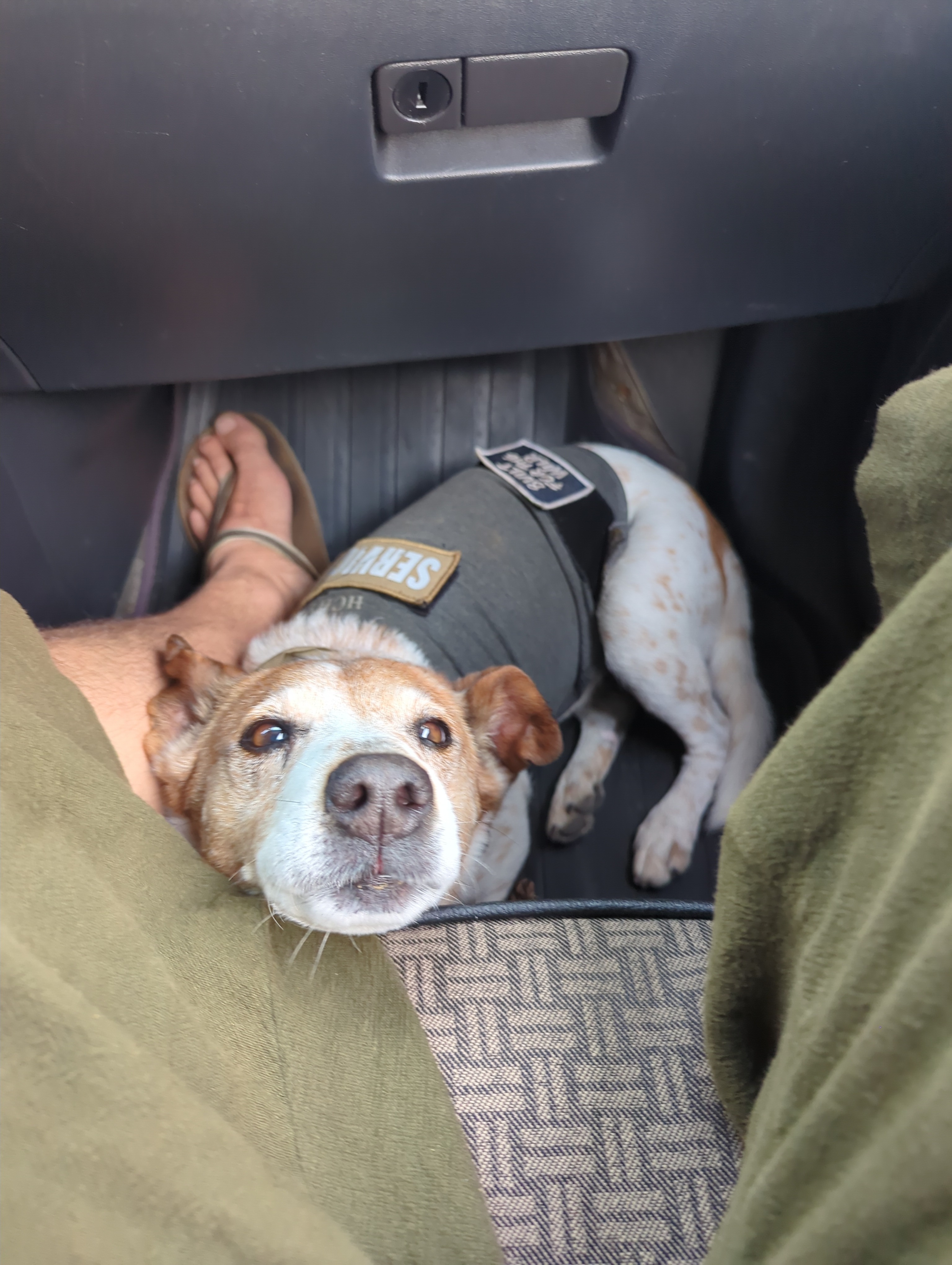 My psychiatric service dog Yarnbi swallowed a fishhook at the river when a kid put his baited pole down. There was a chance it could pass, but also that it could shred his guts on the way out. This is a total freak situation. I do healing bodywork at festivals, which have been slow as of late and cannot afford the cost of this surgery. I can reciprocate bodywork sessions (more at the end on that note).