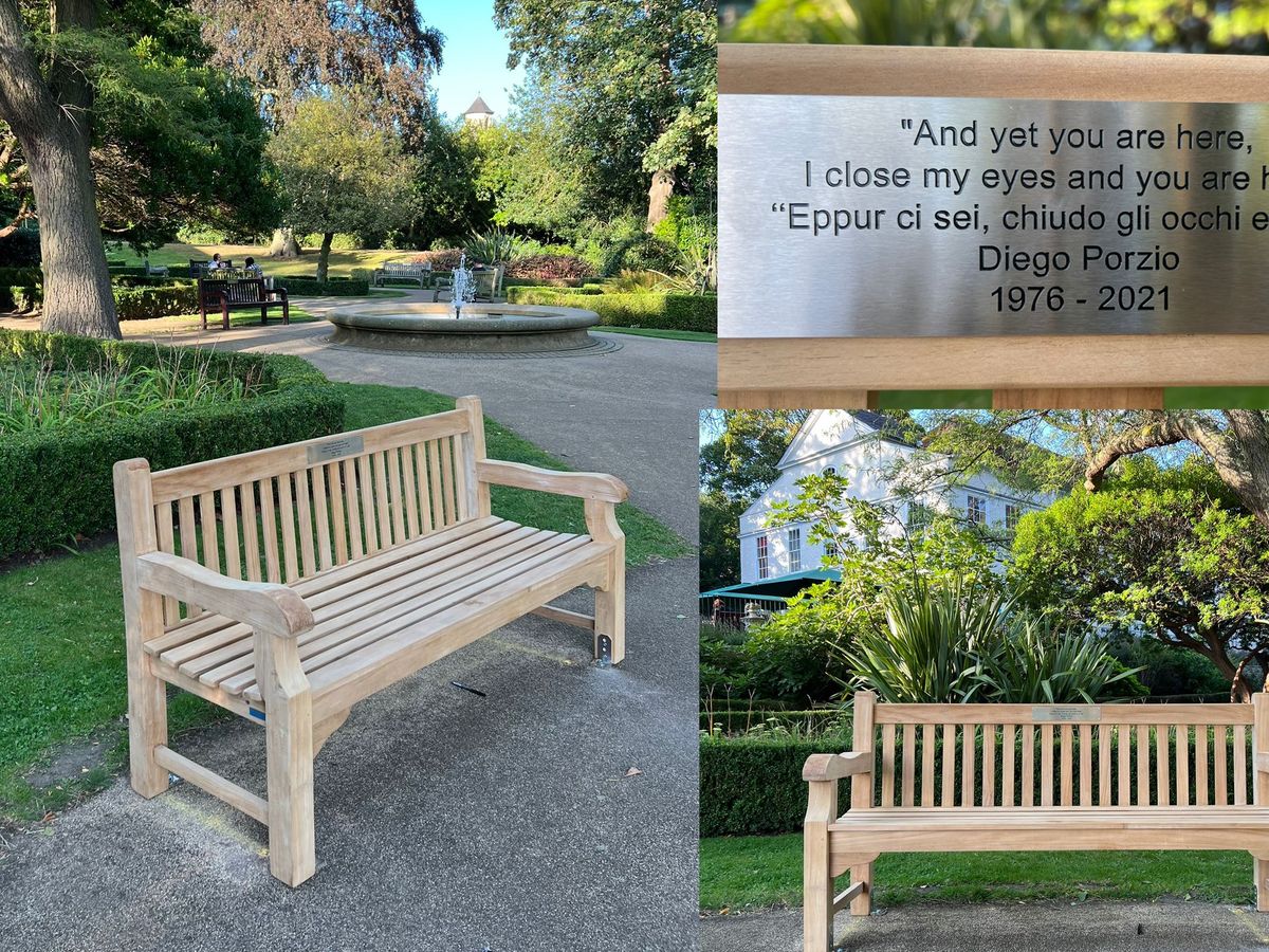 Update: Dear all, we are glad to let you know that Diego’s bench has now been installed in Waterlow Park near Lauderdale’s House. The line on the plaque comes from one of Diego’s poems and reads: “And yet you are here, I close my eyes are you are here” “Eppur ci sei, chiudo gli occhi e ci sei”. Thanks again to everyone for making this happen. We hope the bench will act as a meeting point for Diego’s many friends. --------------------------------------------------------------------------------------------------------- Ciao a tutti, siamo lieti di farvi sapere che la panchina di Diego è stata installata a Waterlow Park nei pressi di Lauderdale House. Il testo sulla targa commemorativa viene dal verso di una poesia di Diego. “And yet you are here, I close my eyes are you are here” “Eppur ci sei, chiudo gli occhi e ci sei”. Grazie a tutti per aver contribuito alla sua realizzazione. Speriamo che la panchina possa essere usata come punto di ritrovo per i numerosi amici di Diego.