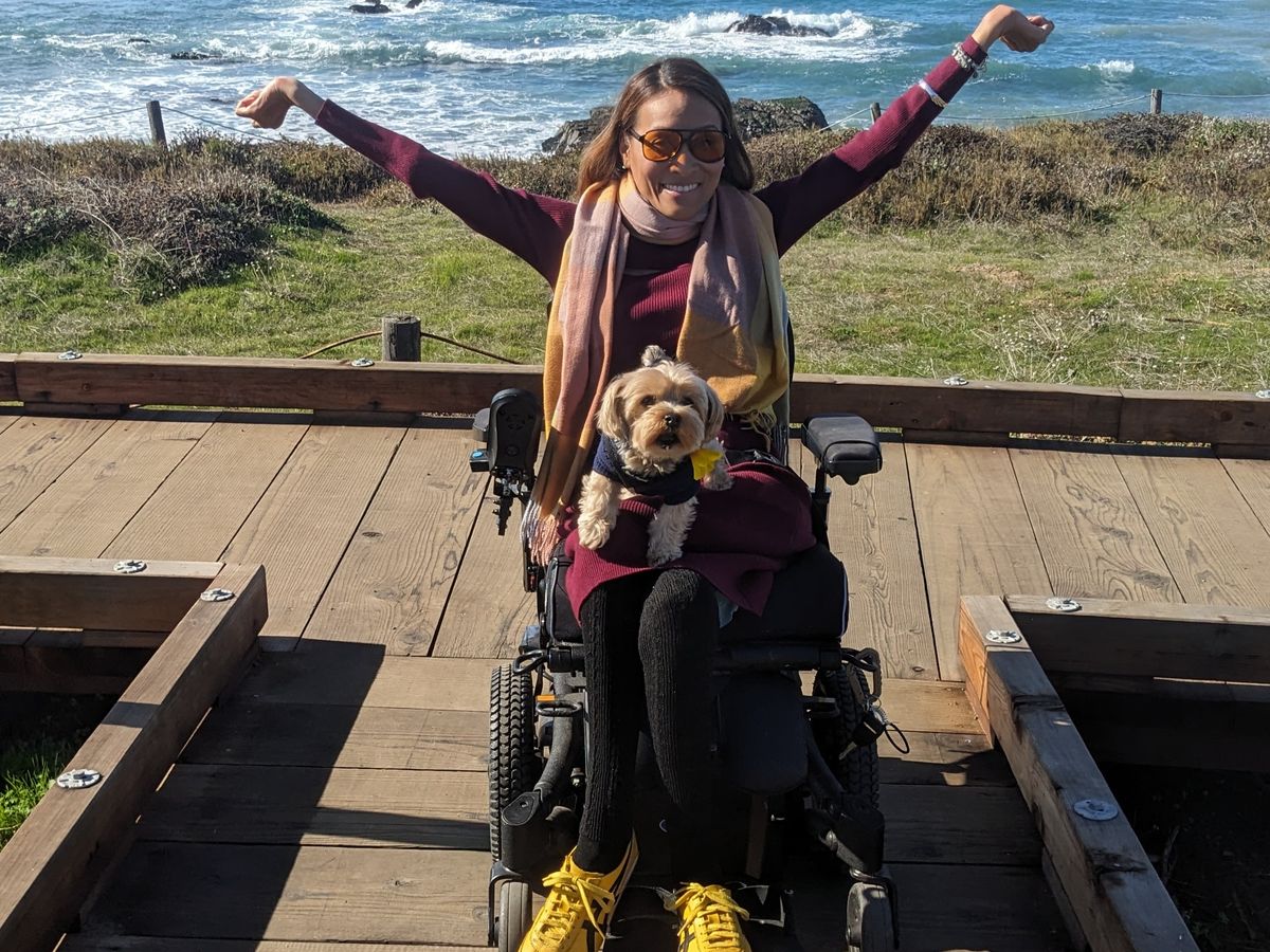 Hello! I'm Angela and my family and friends call me Ange! As some may know I was in a horrific car accident 22 years ago 1 week before 9/11 transporting me into the realm of the paralyzed rendering me a C4 C5 Quadriplegic. What that means is I shattered my vertebrates and severed my spinal cord... IF you lay me down I'm unable to sit up or roll over by myself and yes I need assistance with bathing, dressing, eating and so forth. BUT I always say, "Once you put me in my wheelchair I Can Roll Da World!"