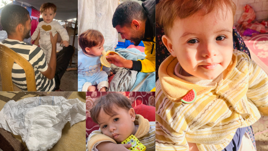 - Then the war broke out, and I lost my job as a freelancer, while my husband also lost his position as a teaching assistant and his freelance work due to the lack of electricity and internet. All our sources of income disappeared, and we were forced to move from one area to another multiple times. Our home was completely destroyed, and our lives were shattered, leaving us to live in tents that offer no protection from the scorching summer heat or the bitter winter cold. Life has become unbearably difficult, with no source of income amidst skyrocketing prices. Adding to the challenge are the special needs of our son, Mohammed, who requires constant care as a child with Down syndrome. He needs physical therapy sessions and developmental support, but when we approached UNRWA centers, they told us they only cater to war-related injuries. Mohammed’s case was sidelined because the facilities are barely sufficient to serve war victims. I tried to find private centers to treat Mohammed at our own expense, but the costs are prohibitively high, and we can’t afford them. Now, Mohammed is about a year and a half old, but he still can’t stand. Despite all of this, I have not given up—neither I nor Mohammed. We hold on to hope and continue to fight for a better life for him.