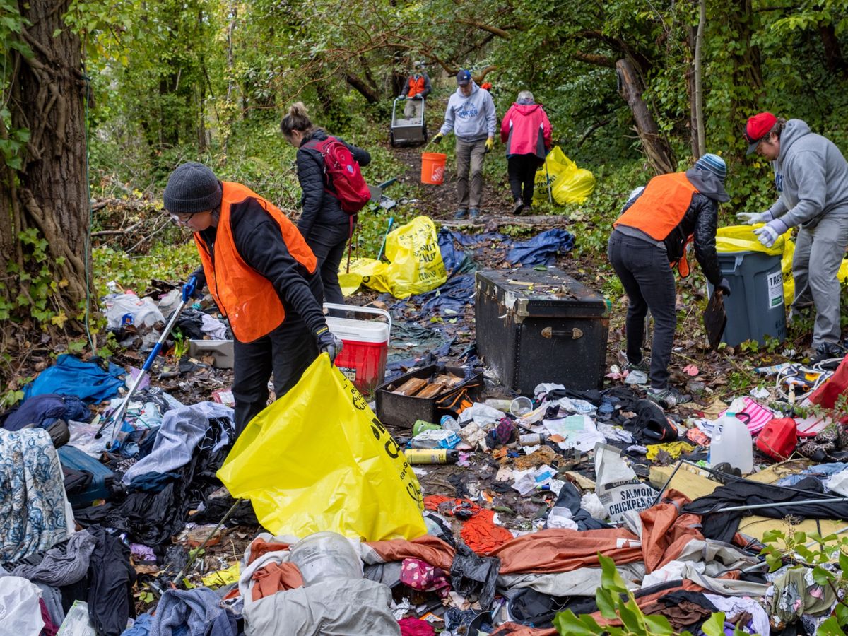 More about our cleanup efforts: I run a volunteer-powered cleanup group in West Seattle called A Cleaner Alki which is active almost every day of the year. I deliver our self-led Block Drop stations around West Seattle each day for volunteers to collect trash from family-friendly locations like residential neighborhoods, schools, parks, beaches and business junctions. I also organize and facilitate weekly community cleanup Events along neglected roadways, at illegal dumping sites, picking up garbage from unhoused neighbors in RVs or cleaning up encampments with consent from residents. We’ve also recently added Spruced! cleanups to our lineup where we work on overgrown sidewalks, staircases and dilapidated properties—reestablishing cleaner, safer neighborhood infrastructure and pass-throughs.