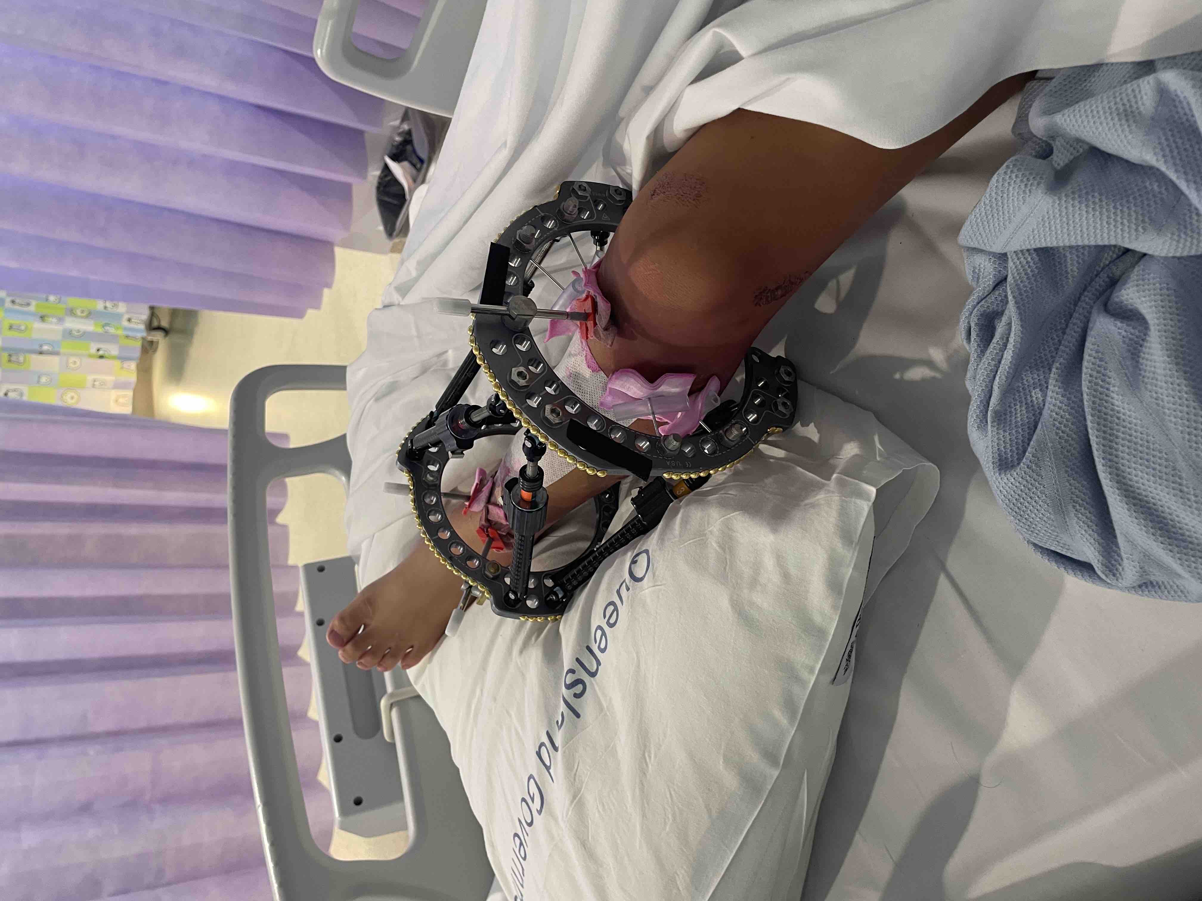 He required surgery and strict bed rest for 4days and has since bravely undergone three surgeries.
