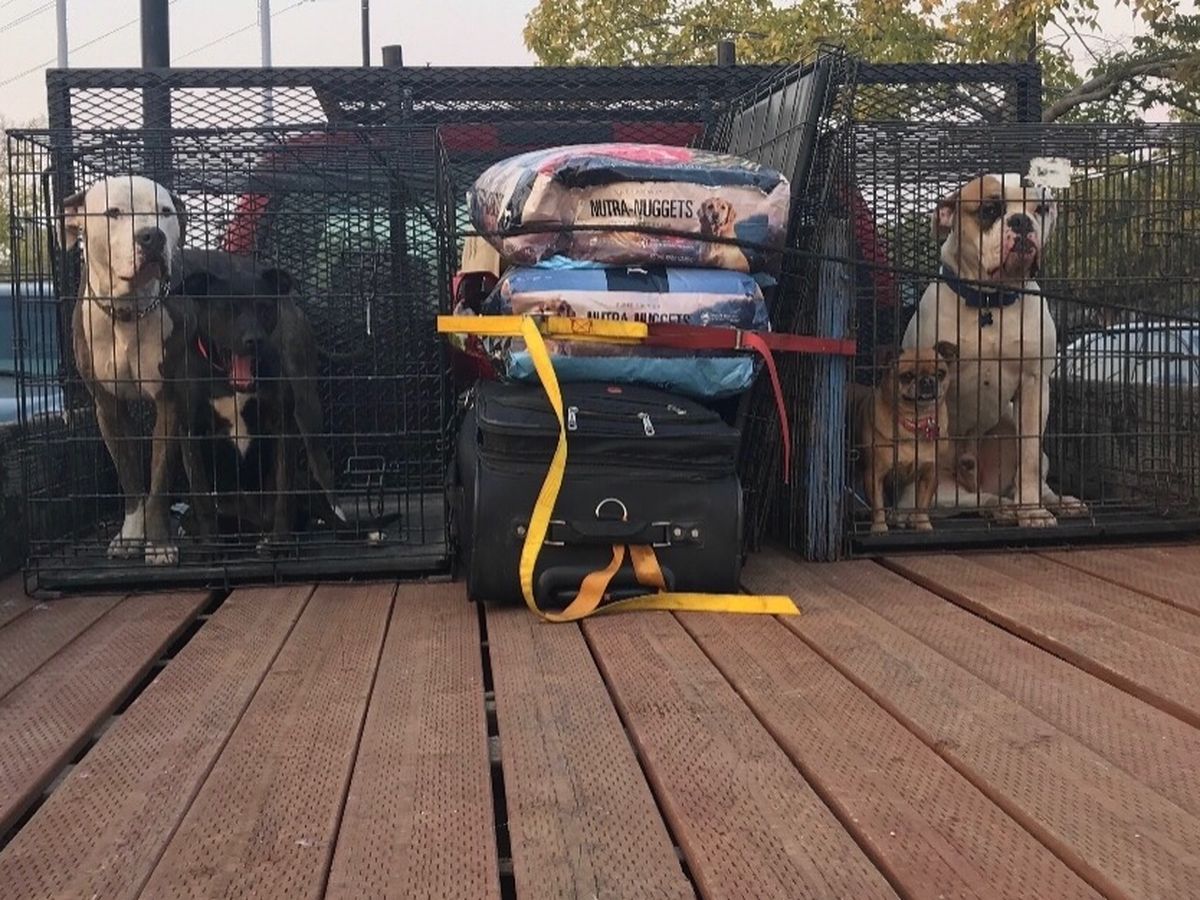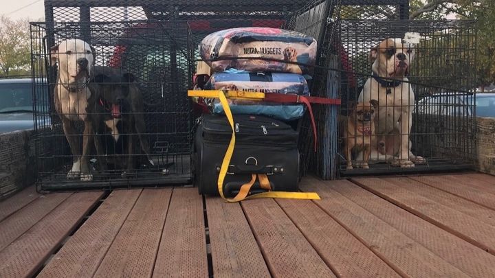 (Not pictured are her cats, her chickens, and three other dogs that made it out with her.)